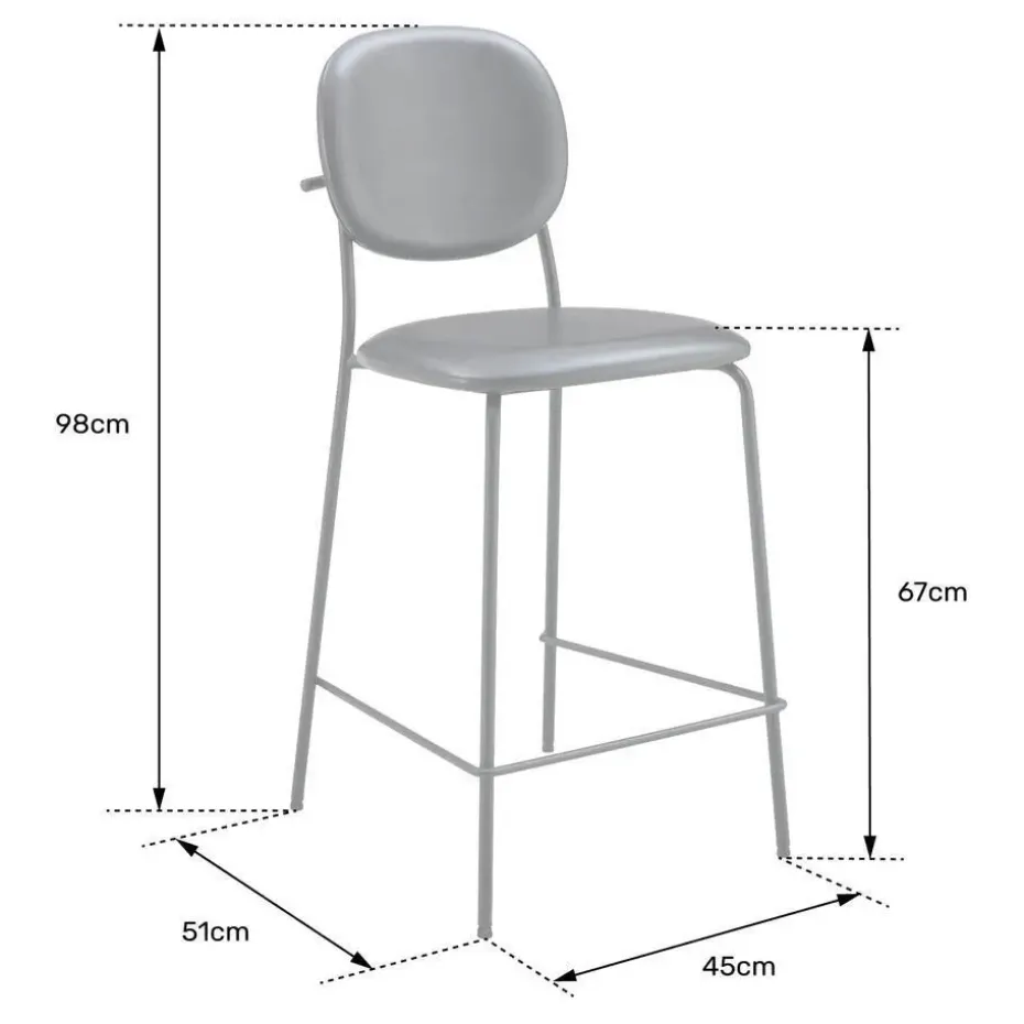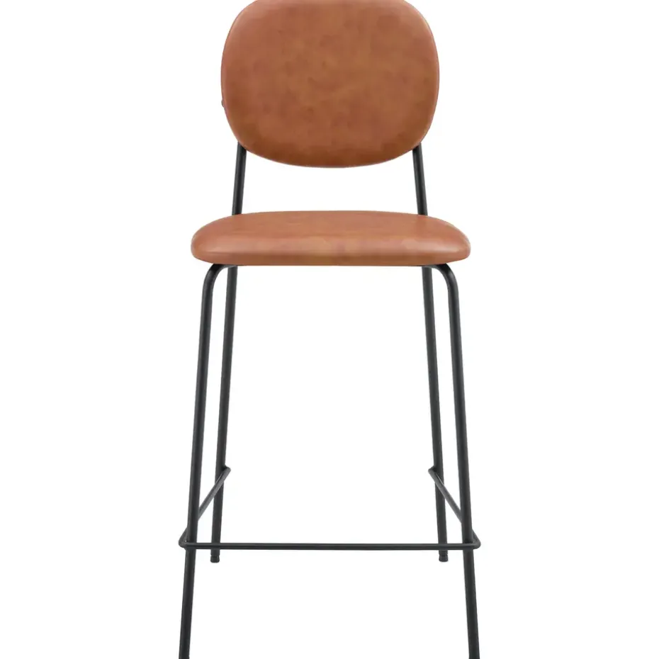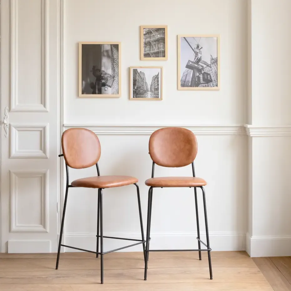 De EDMOND barkrukken zijn bekleed met kunstleer en opgevuld met schuim voor optimaal comfort. De ijzeren poten zorgen voor stabiliteit en stevigheid. Er is ook een voetsteun ingebouwd voor het comfort van de benen. Dankzij hun sobere ontwerp passen deze krukken gemakkelijk in verschillende interieurstijlen. Het contrast tussen de bekleding en de zwarte poten voegt een discreet vleugje elegantie toe aan je ruimte!