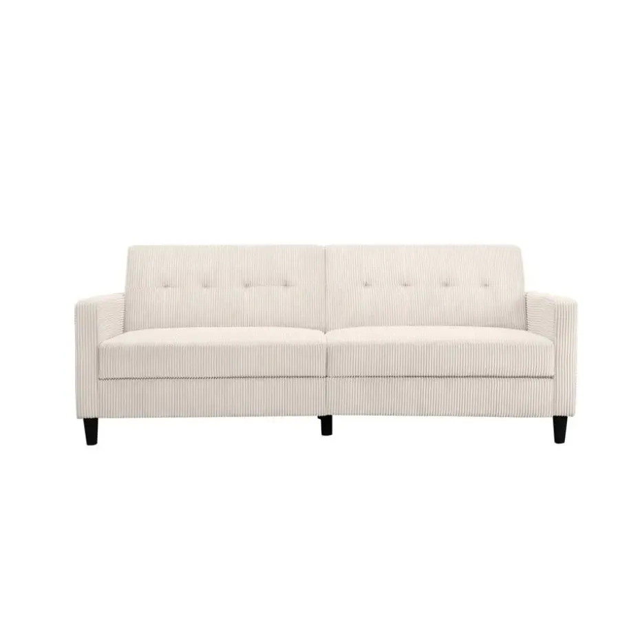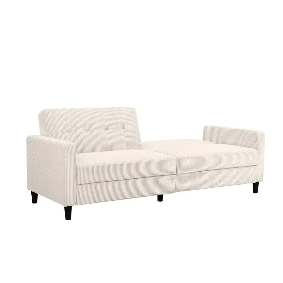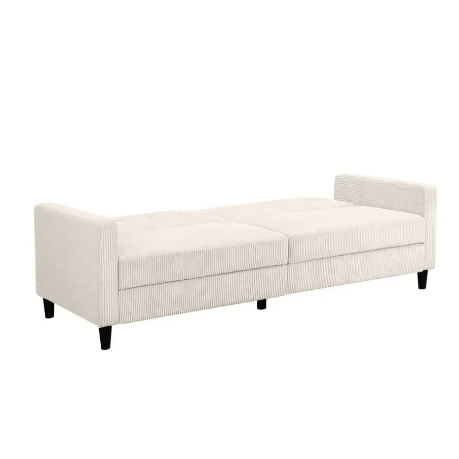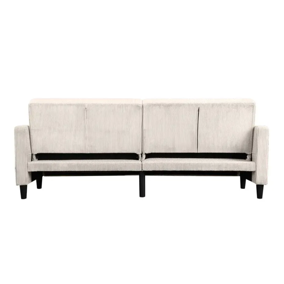 Deze 3-zits slaapbank biedt hoog zitcomfort en draagvermogen. Het is een ruimtebespaarder, omdat het een uitschuifbaar ligoppervlak heeft, waardoor het zowel een slaap- als rustruimte is. De bank is handmatig verstelbaar. Elke zitplaats kan tot 125 kilogram dragen. FSC®-gecertificeerd meubilair zoals dit helpt bossen te behouden voor toekomstige generaties. De voeten zijn gemaakt van plastic.