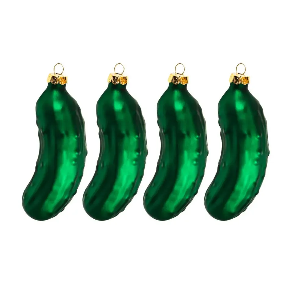 Voeg een unieke twist toe aan je kerstdecor met deze set van 4x glazen augurken in een levendige groene kleur! Met een hoogte van ongeveer 9,2 cm zijn deze schattige kersthangers perfect voor het creeren van een speelse en vrolijke sfeer in je kerstboom. Gemaakt van hoogwaardig glas, zijn ze niet alleen ornamenten, maar ook een leuk gespreksonderwerp. Laat deze bijzondere kerstornamenten stralen tussen je andere versieringen en maak je feestdagen nog specialer.