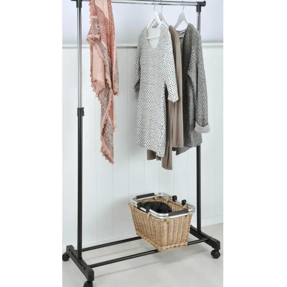 HI mobiel kledingrek verstelbaar op wielen. Houd je kleding overzichtelijk en binnen handbereik met dit mobiele kledingrek van HI. Het praktische ontwerp met verstelbare hoogte en soepele wieltjes maakt het ideaal voor zowel thuisgebruik als in winkels, kleedkamers of op beurzen.