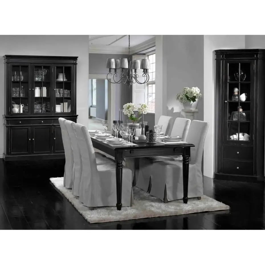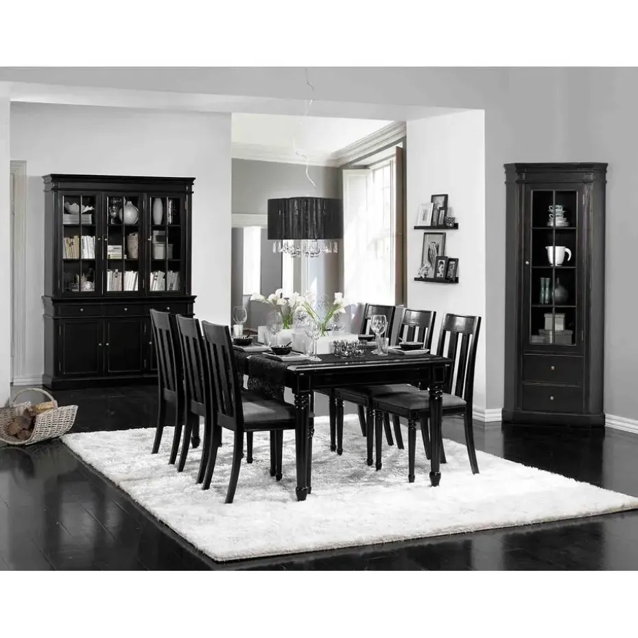 Amaretta hoekkast breedte 78 cm, hoogte 200 cm zwart antiek gepatineerd is een vitrinekast in de kleur zwart die zowel stijl als functionaliteit in uw huis brengt. Prachtige hoekkast uit onze populaire meubelserie Amaretta. De kast is gemaakt van massief hout dat zwart geverfd is en een antieke patina heeft. De handgrepen zijn van metaal in antieke stijl, de kast heeft 3 planken en 2 lades. De Amaretta serie is gemaakt van goede materialen met oog voor detail. Solide kwaliteitsmeubels met ziel. Stijlvol ontwerp met antieke patinatie. Een kwaliteitsmeubel, stijlvol, charmant en solide. Dit product is gemaakt met oog voor detail, wat zowel esthetische aantrekkingskracht als hoge duurzaamheid garandeert. Het is ontworpen met zowel functionaliteit als stijl in gedachten, waardoor het de perfecte keuze is voor elke kamer in uw huis. De gebruikte materialen zijn van hoge kwaliteit, waardoor het product een lange levensduur heeft en bestand is tegen dagelijks gebruik. Of het nu voor opslag is of als decoratieve toevoeging, dit product zal uw interieur naar een hoger niveau tillen en extra comfort en elegantie in uw huis brengen.