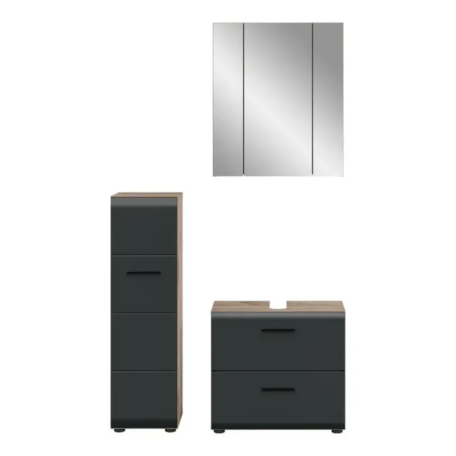 Hioshop Ice badkamer I24 zwart mat- eiken decor