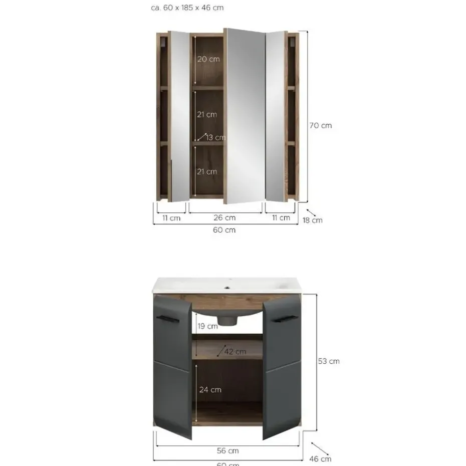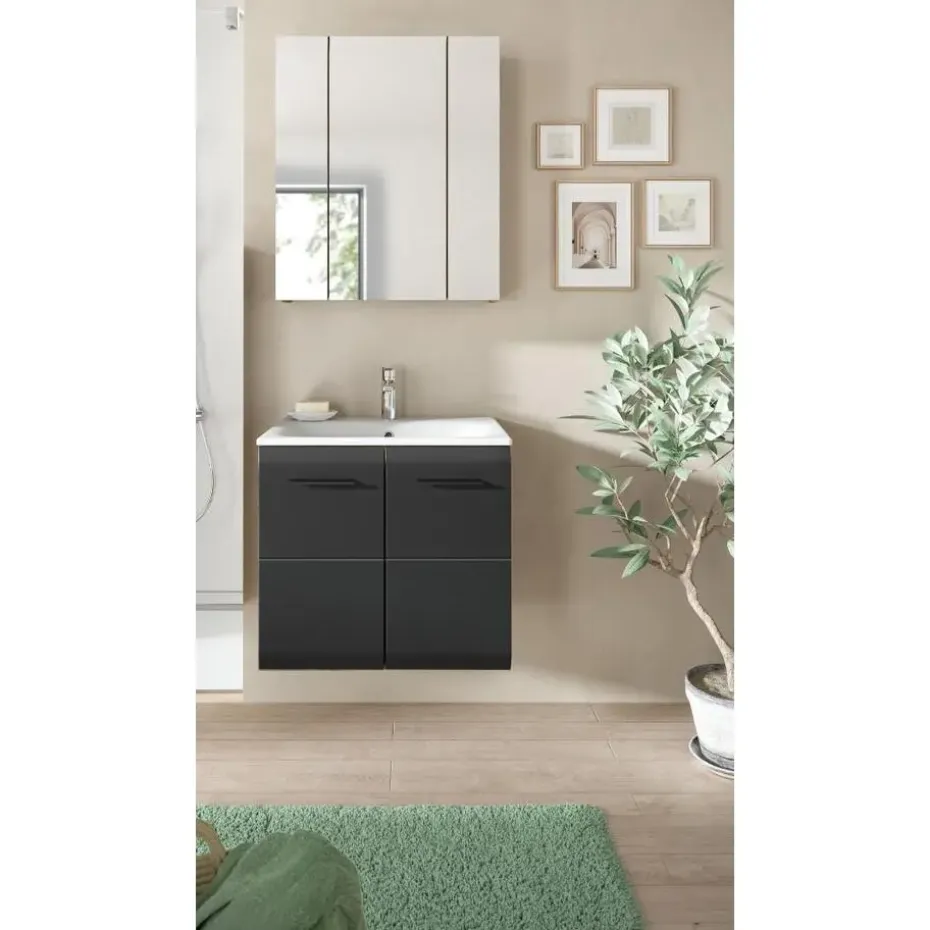 Hioshop Ice badkamer I3 zwart mat- eiken decor