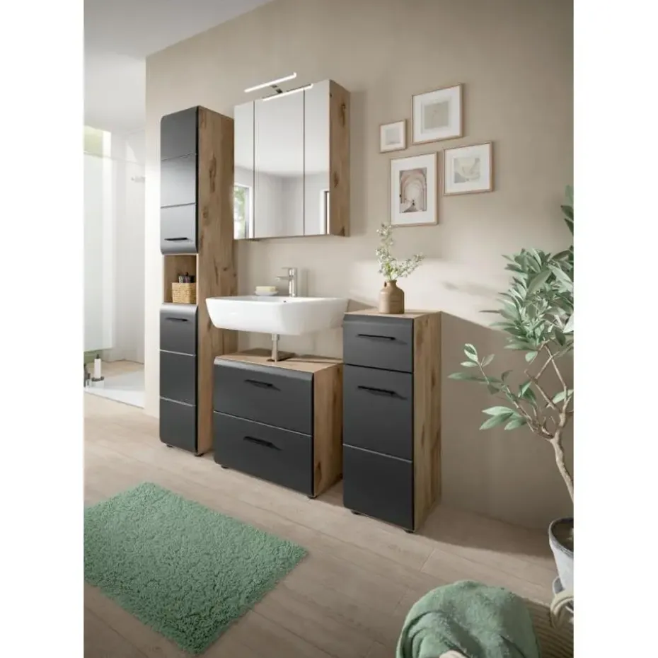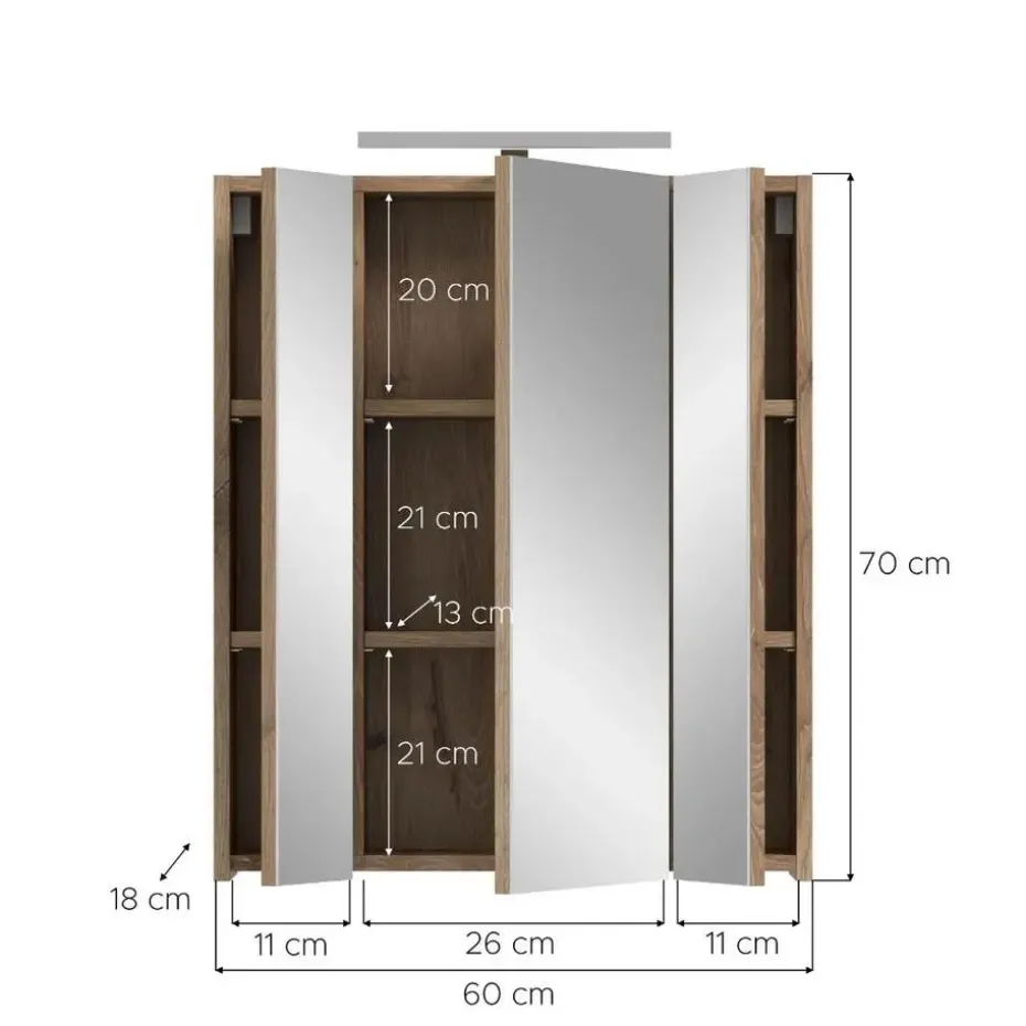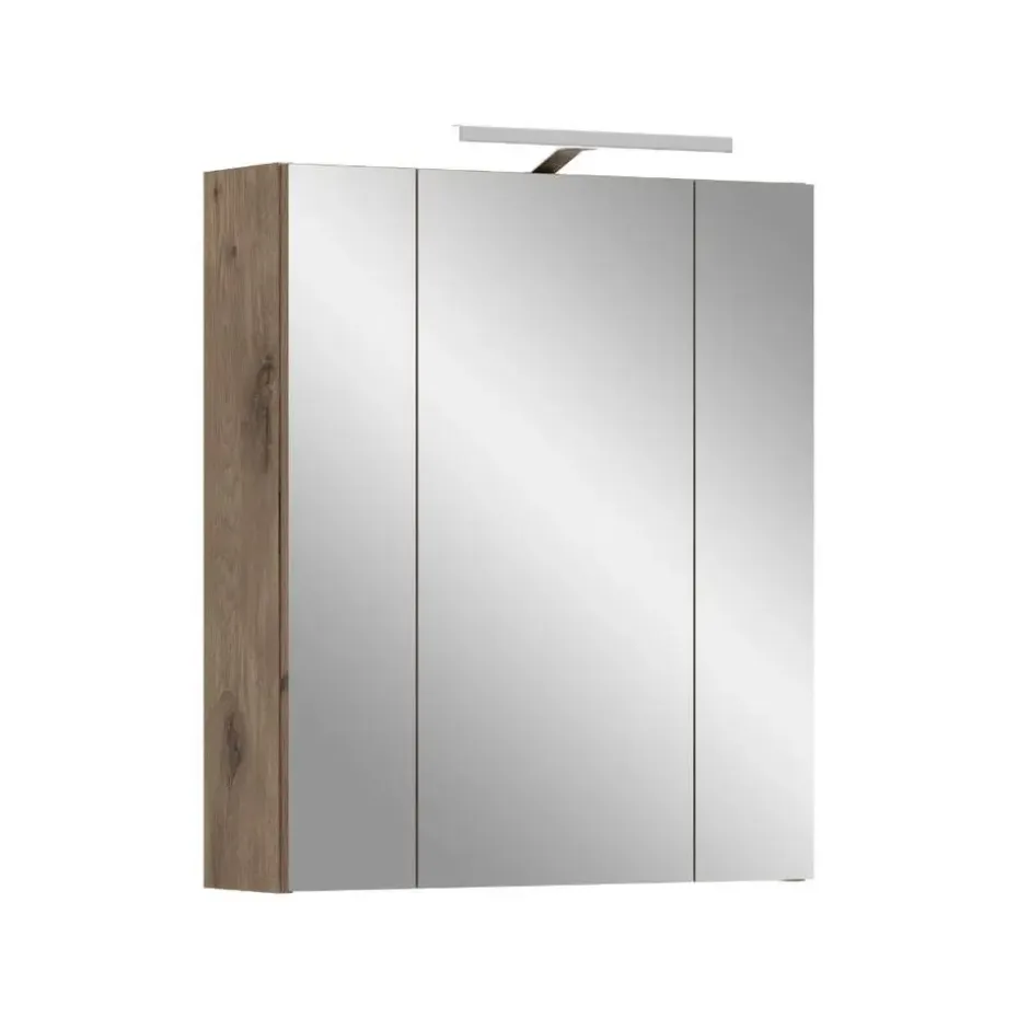 Hioshop Ice spiegelkast inclusief verlichting 3 spiegeldeuren zwart mat- eiken