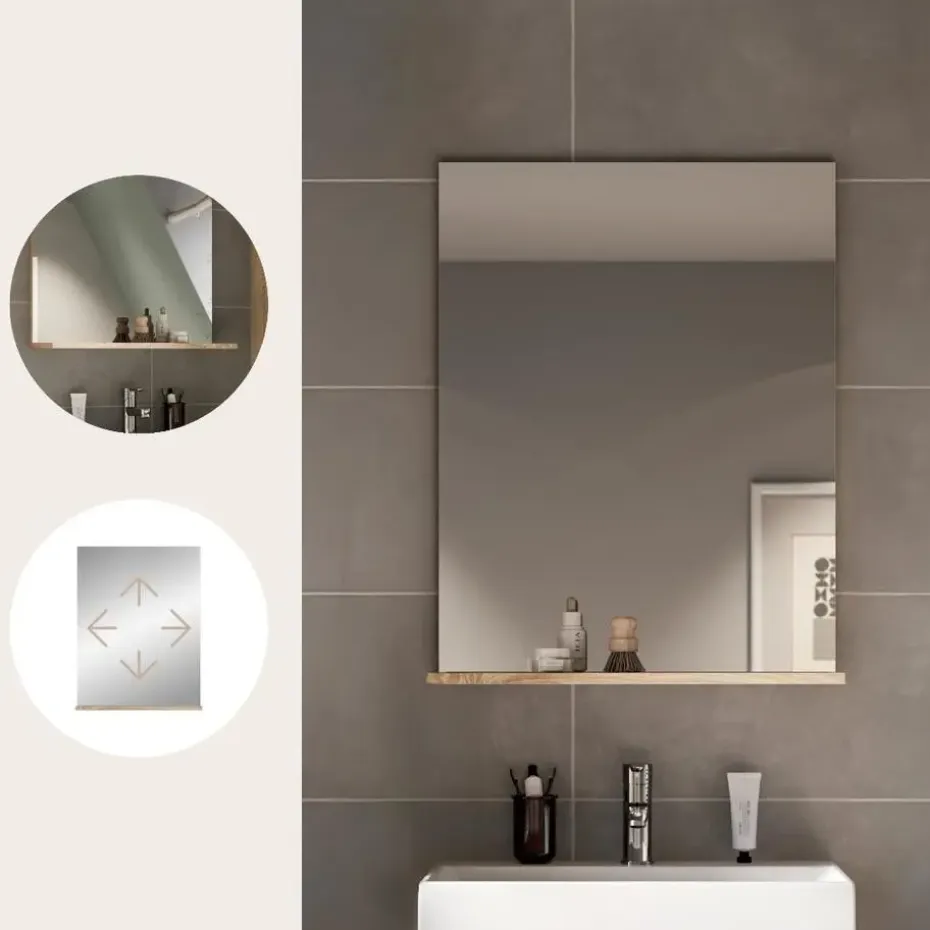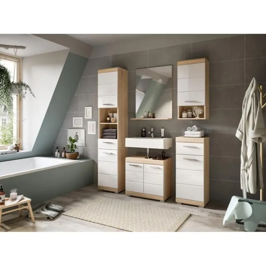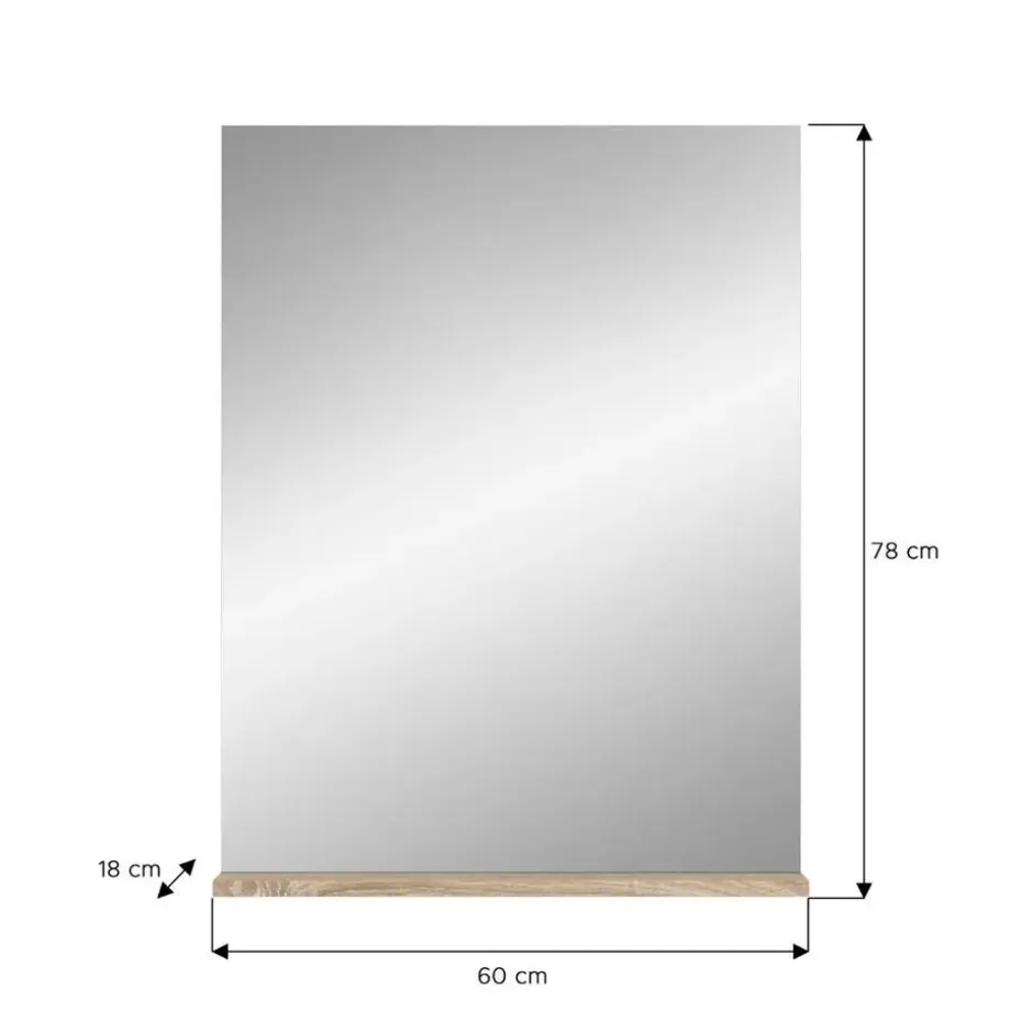 Lambada spiegel bad 1 deur, 1 plank wit hoogglans, eiken decor. Deur omkeerbaar. Stijlvol en modern: onze badkamerspiegel met trendy rookzilveren afwerking is een must-have voor elke moderne badkamer. Met afmetingen van 60 x 79 x 18 cm biedt hij niet alleen functionaliteit, maar ook een vleugje elegantie. Ontdek nu de perfecte spiegel voor uw badkamer!