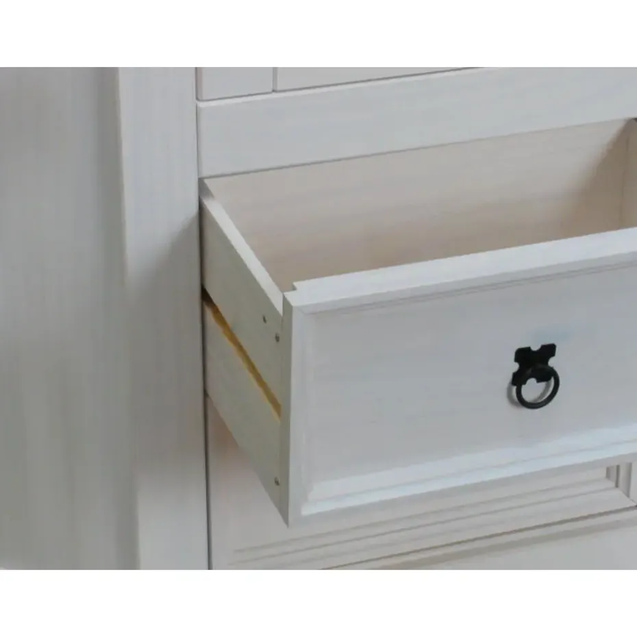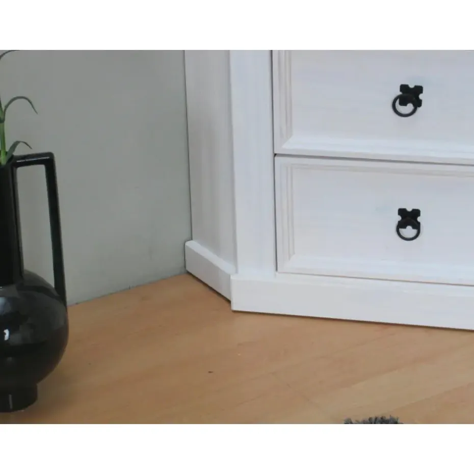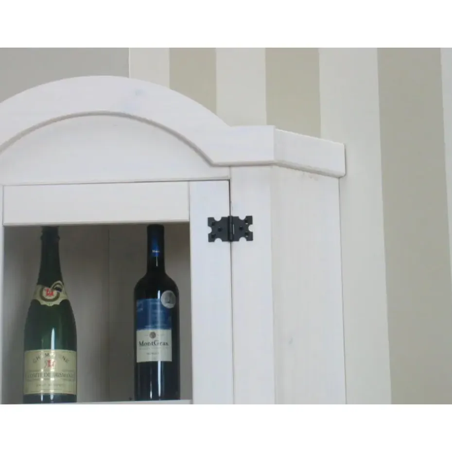 New Mexico hoekkast met 1 glazen deur en 2 lades in witte was is een vitrinekast in nan-kleur, die zowel stijl als functionaliteit in je huis brengt. Leuke, rustieke hoekkast in antieke stijl. De kast is gemaakt van massief grenen dat wit is gewaxt, waarbij de houtstructuur zichtbaar is door de witte kleur. Achter de deur vind je 3 losse planken. Dit product is gemaakt met oog voor detail, wat zowel esthetische aantrekkingskracht als hoge duurzaamheid garandeert. Het is ontworpen met zowel functionaliteit als stijl in gedachten, waardoor het de perfecte keuze is voor elke kamer in uw huis. De gebruikte materialen zijn van hoge kwaliteit, waardoor het product een lange levensduur heeft en bestand is tegen dagelijks gebruik. Of het nu voor opslag is of als decoratieve toevoeging, dit product zal uw interieur naar een hoger niveau tillen en extra comfort en elegantie in uw huis brengen.