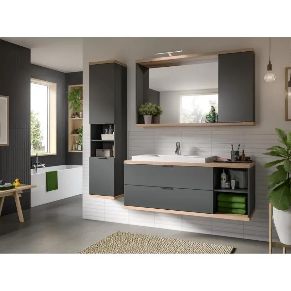 Nuaro badkamerkast wandgemonteerd 2 deuren grijs. Deur omkeerbaar. Ontdek onze ruimtebesparende wandkast voor uw badkamer, met afmetingen van 35 x 160 x 31 cm. De elegante antracietgrijze afwerking geeft uw ruimte een moderne touch, terwijl de royale opbergruimte zorgt voor een overzichtelijke indeling. Bestel nu dit stijlvolle en functionele meubel voor uw badkamer.