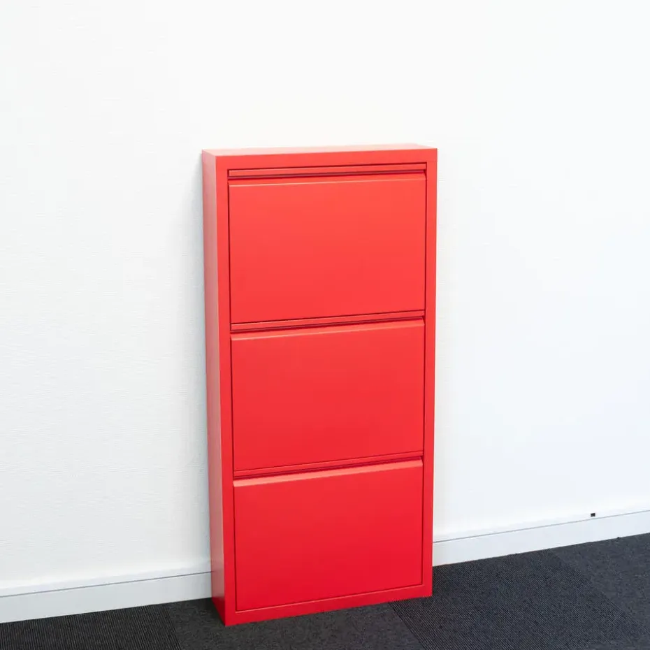 Pisa schoenenkast met 9 deuren in metaal rood. Volledig gemonteerd geleverd is een schoenenkast in de kleur rood, die zowel stijl als functionaliteit in uw huis brengt. Wordt volledig gemonteerd geleverd. Ral 3020 rood. Lade binnenkant: B46/L29/D13 cm. Kan op de vloer worden geplaatst of aan de muur worden gehangen. Kan individueel gebruikt worden. Deuren gaan gelijktijdig open. Dit product is gemaakt met oog voor detail, wat zowel esthetische aantrekkingskracht als hoge duurzaamheid garandeert. Het is ontworpen met zowel functionaliteit als stijl in gedachten, waardoor het de perfecte keuze is voor elke kamer in uw huis. De gebruikte materialen zijn van hoge kwaliteit, waardoor het product een lange levensduur heeft en bestand is tegen dagelijks gebruik. Of het nu voor opslag is of als decoratieve toevoeging, dit product zal uw interieur naar een hoger niveau tillen en extra comfort en elegantie in uw huis brengen.