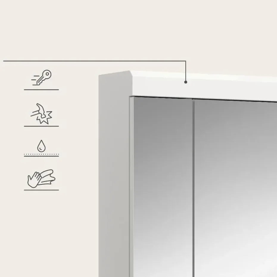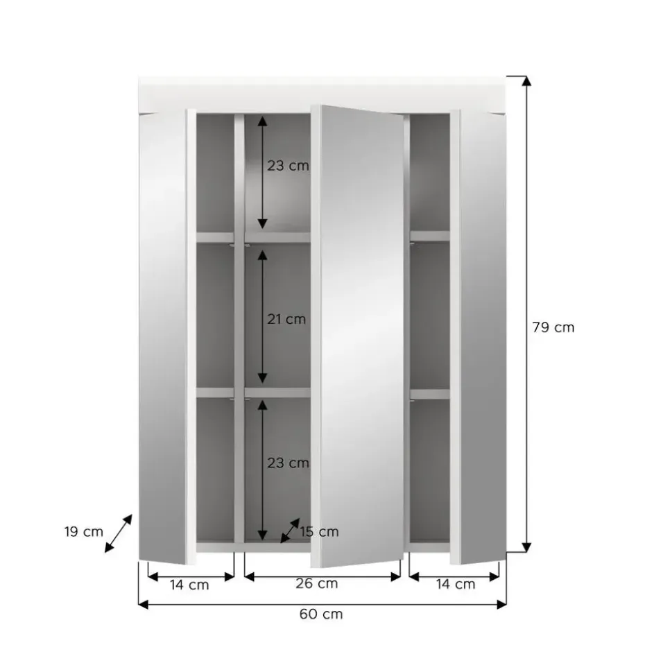 Scout spiegelkast 3 spiegeldeuren wit hoogglans, wit. Deur omkeerbaar. In ons trendy assortiment vindt u de ultieme badkamerspiegelkast in een moderne witte afwerking met een hoogglanzend, diepgetrokken oppervlak. Met afmetingen van 60 x 79 x 18 cm is het niet alleen een functionele spiegel, maar ook een stijlvolle accessoire voor uw badkamer. Ervaar de perfecte combinatie van modern design en functionaliteit met onze trendy spiegelkast.