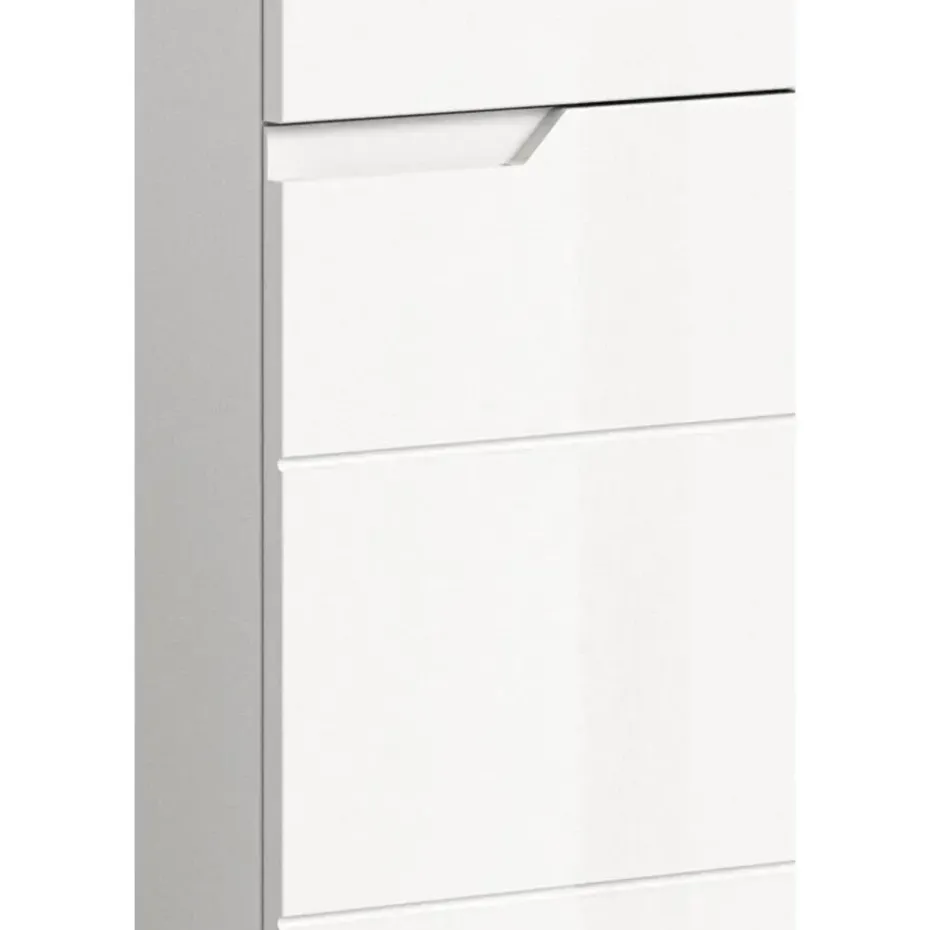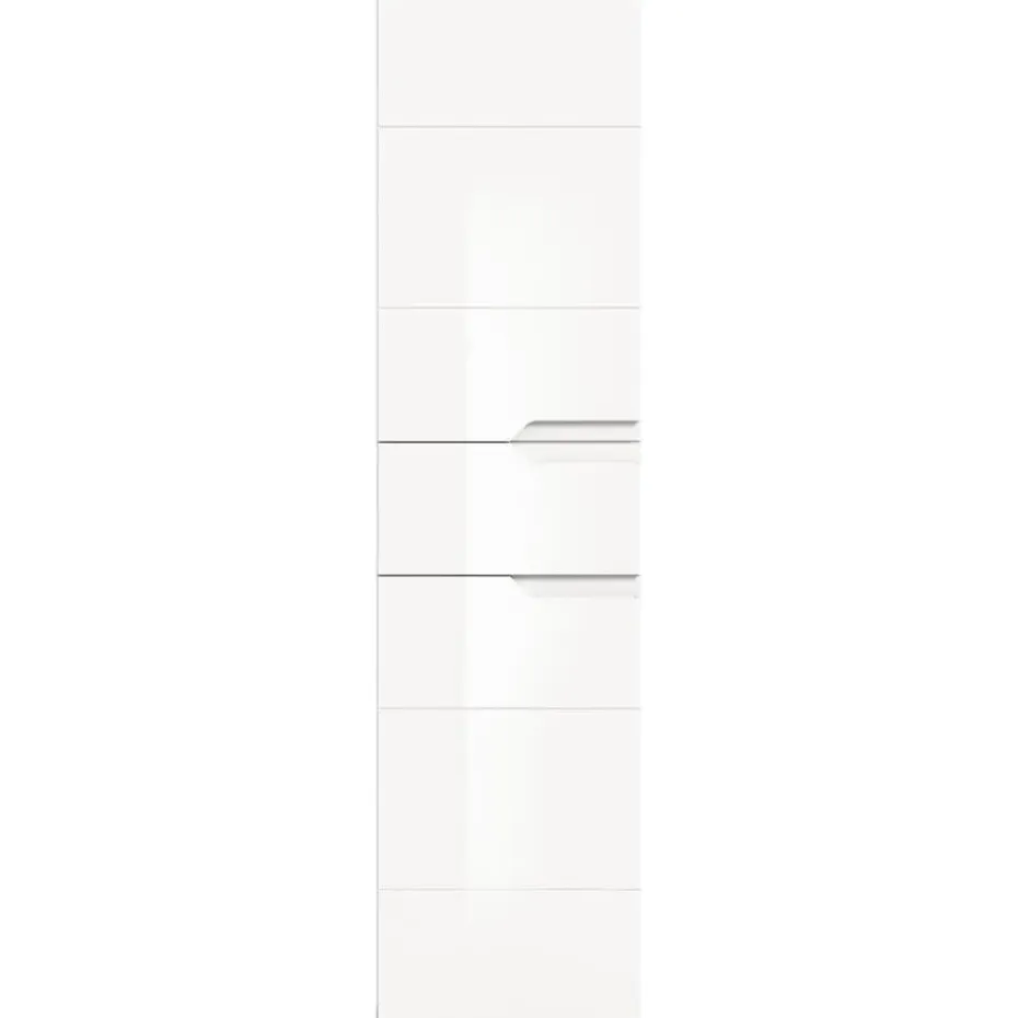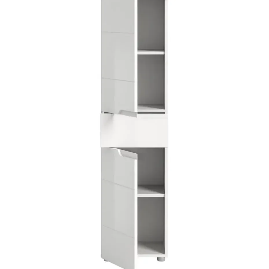 Solero badkamerkast 2 deuren, 1 lade wit hoogglans, wit. Deur Softclose. Lade volledig uittrekbaar. Deze stijlvolle vrijstaande kast (B/H/D: 38x151x34 cm) in een witte afwerking met een hoogglans oppervlak brengt modern design en functionele opbergruimte in huis. Dankzij de compacte afmetingen past dit meubelstuk harmonieus in elke kamer en biedt het voldoende ruimte voor uw persoonlijke spullen. Uitgerust met een praktische lade en twee deuren creëert de kast een opgeruimde en georganiseerde sfeer. De deuren hebben een softclose-mechanisme voor soepel en geruisloos sluiten. Deze kast is gemaakt van FSC®-gecertificeerd houtmateriaal en staat voor duurzame en milieubewuste productie. Perfect voor wie waarde hecht aan esthetiek, kwaliteit en duurzaamheid.