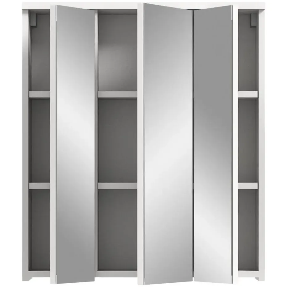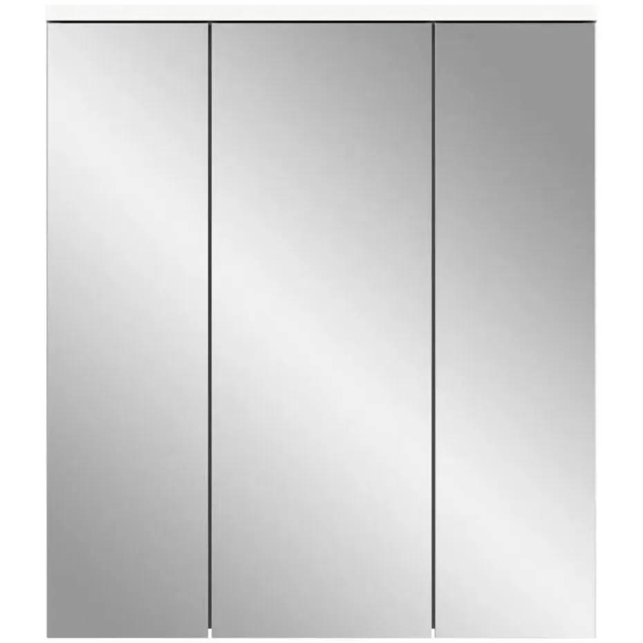 Solero spiegelkast 3 spiegeldeuren wit hoogglans, wit. Deur omkeerbaar. Deur met Softclose. Deze elegante spiegelkast (B/H/D: 63x73x21 cm) overtuigt door zijn moderne design en praktische functionaliteit. Het hoogglans witte front geeft het meubel een stijlvolle uitstraling, terwijl de drie spiegeldeuren de ruimte visueel vergroten en voor extra lichtinval zorgen. Met zes verstelbare planken biedt de kast voldoende ruimte voor het netjes opbergen van badkamerartikelen. De deuren zijn voorzien van een softclose-mechanisme dat zorgt voor een stille en zachte sluiting. De kast is gemaakt van FSC®-gecertificeerd houtmateriaal en staat voor duurzame en milieubewuste productie. Dit meubel is de perfecte combinatie van design, functionaliteit en duurzaamheid voor elke moderne badkamer.