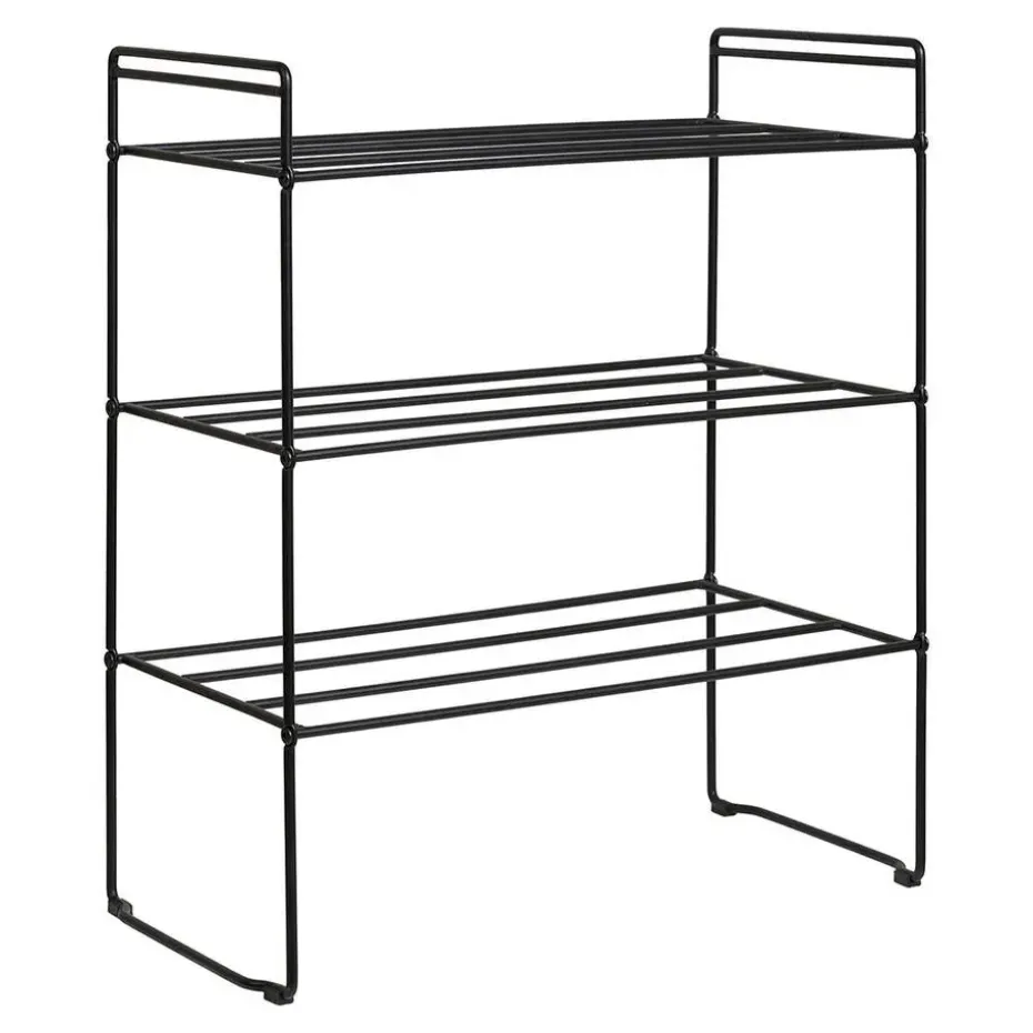 Deze stijlvolle en functionele plank is gemaakt van stevig metaal en heeft een modern, minimalistisch design. Met drie open planken is hij ideaal voor het opbergen van boeken, decoraties of opbergdozen. De zwarte afwerking geeft een verfijnde uitstraling en maakt de plank tot een praktisch opberg- en decoratief meubelstuk dat past in zowel moderne als industriële interieurs. Door de lichtgewicht constructie is hij gemakkelijk te plaatsen en te verplaatsen in huis.