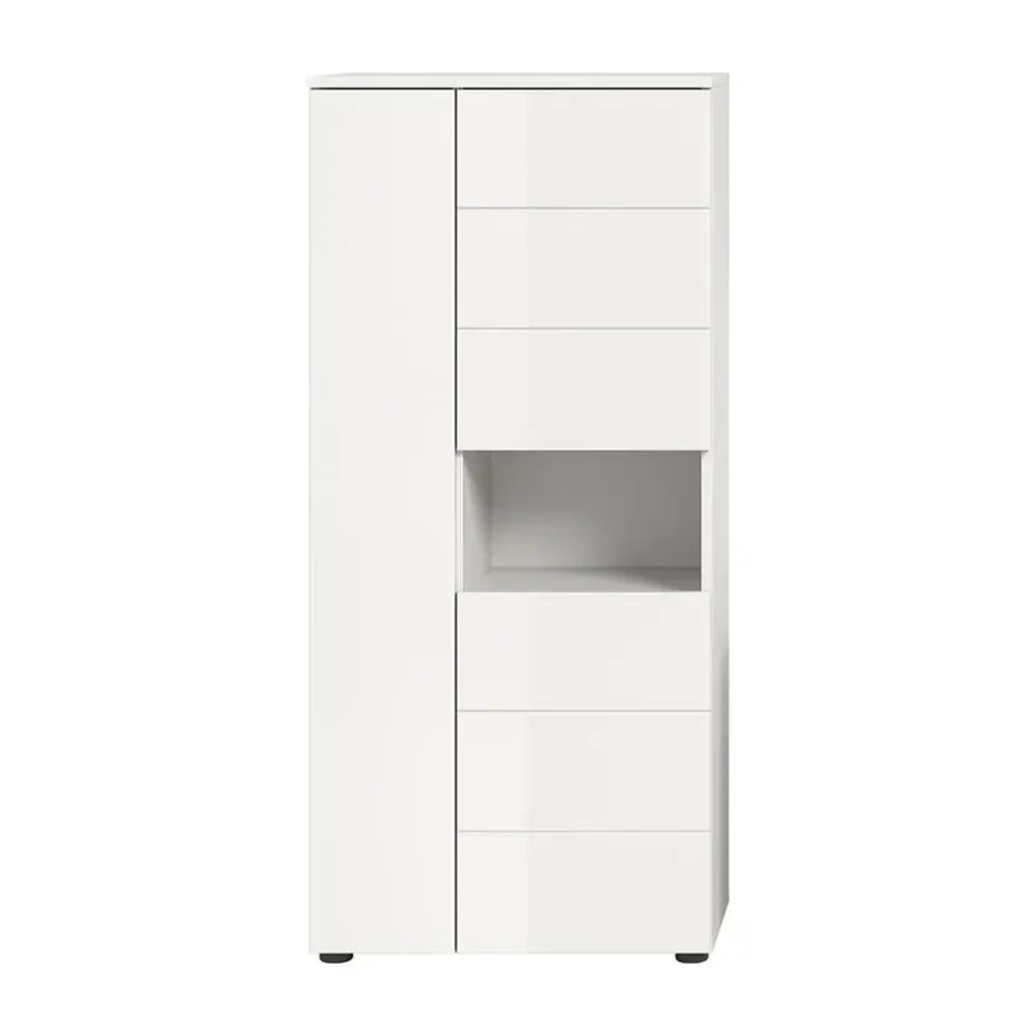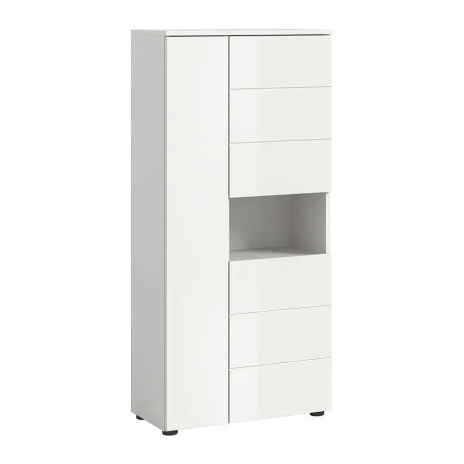 De glanzend witte hoogglans front geeft een exclusieve uitstraling en reflecteert het licht prachtig, waardoor de ruimte zowel groter als uitnodigender lijkt. De compacte vorm van de kast maakt hem geschikt voor zowel kleine als grote badkamers.