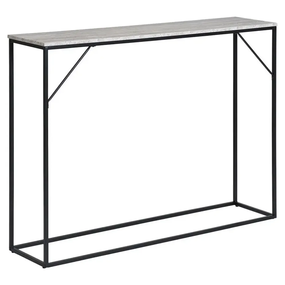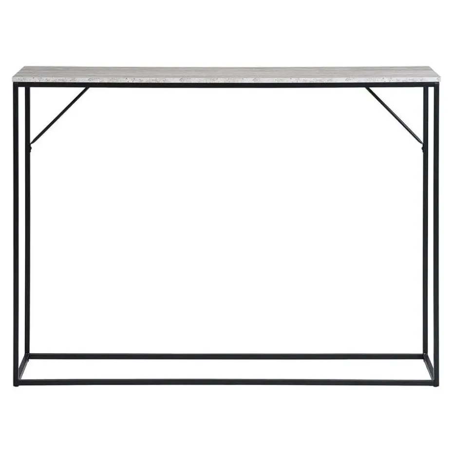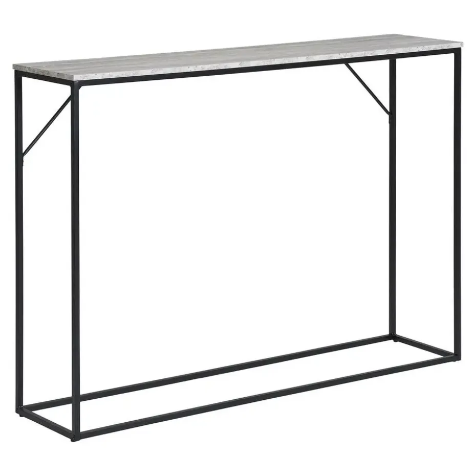 Deze consoletafel combineert een ruw betonoppervlak met een stijlvol metalen frame, waardoor hij een moderne en industriële uitstraling krijgt. De slanke constructie maakt de tafel perfect voor smalle ruimtes zoals entrees of gangen, waar hij zowel als decoratief element als praktische opbergruimte kan worden gebruikt. Het eenvoudige ontwerp maakt het mogelijk om te combineren met verschillende stijlen en interieurthema’s, van een minimalistische woning tot een meer rustiek huis.