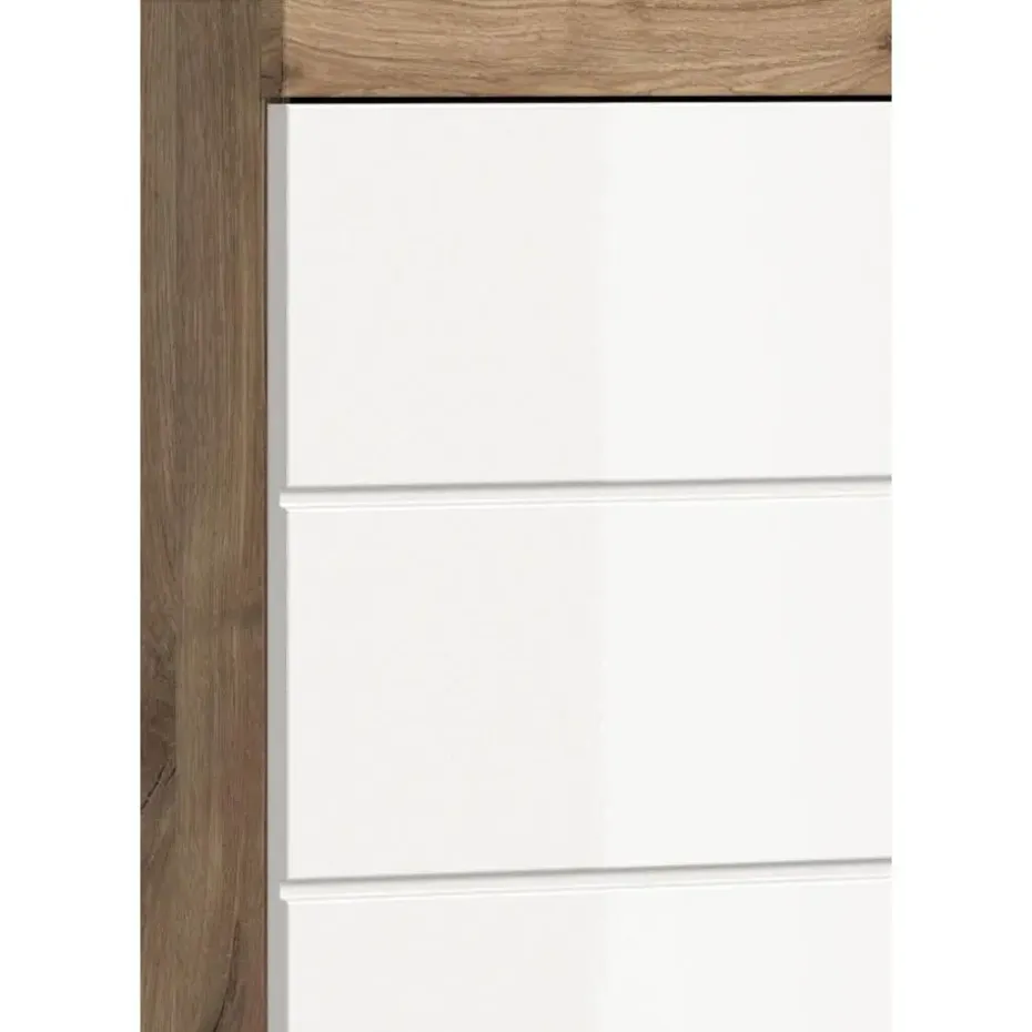Wave wastafel 2 deuren wit hoogglans, eiken decor. Zonder wastafel. Deur omkeerbaar. Geef uw badkamer een nieuwe look met een elegant en functioneel wastafelmeubel. Met een afmeting van 37 x 191 x 31 cm biedt dit meubel een stijlvolle opbergoplossing voor uw badkamerartikelen. Het hoogglans witte front geeft het meubel een moderne en verfijnde uitstraling. In combinatie met de details van Nox Oak creëert het een harmonieus design dat perfect past in elk badkamerinterieur. Achter de twee deuren bevinden zich twee ruime vakken die voldoende ruimte bieden voor handdoeken, schoonmaakproducten en andere badkamerartikelen. Gemaakt van FSC®-gecertificeerd houtmateriaal, symboliseert dit meubel duurzaamheid en milieubescherming. Het combineert hoogwaardig vakmanschap met een bijdrage aan het behoud van onze bossen. Transformeer uw badkamer tot een oase van rust en stijl met dit tijdloze wastafelmeubel dat functionaliteit en esthetiek perfect combineert!