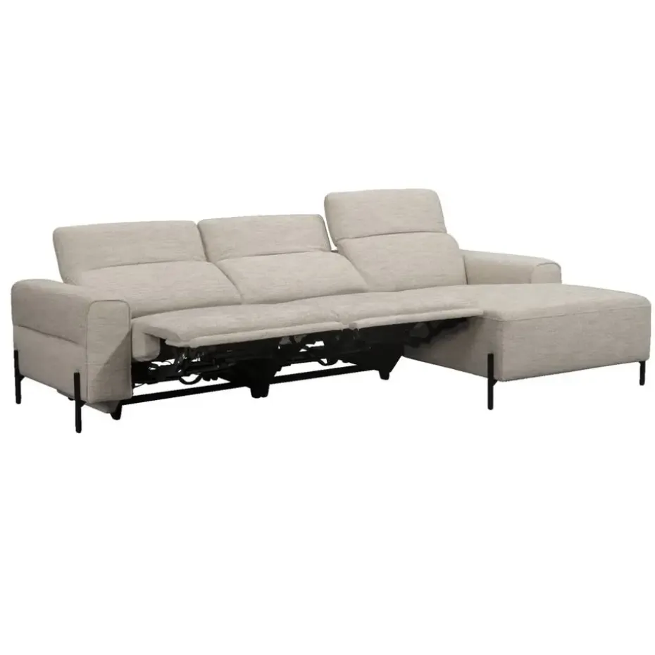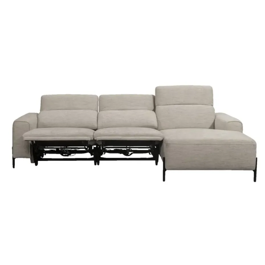 Bank Dave is de perfecte hoekbank voor wie op zoek is naar een comfortabele bank met elektrisch verstelbare voeten- en rugleuningen. De lichtgrijs kleurige stof heeft een speels effect en geeft de bank een trendy uitstraling. Of je nu met de voetjes omhoog een film kijkt of liever in de rechterhoek van deze bank ontspannen een boek leest, bank Dave biedt ultiem comfort.