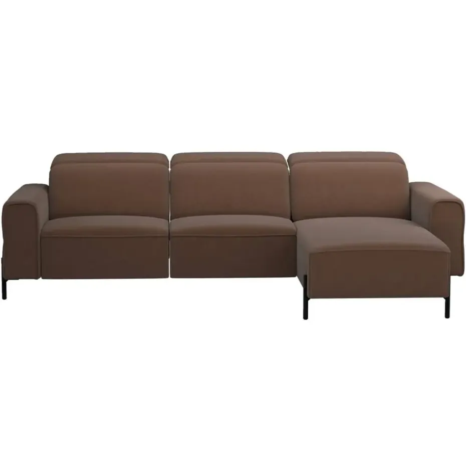 Bank Dave is de perfecte hoekbank voor wie op zoek is naar een comfortabele bank met elektrisch verstelbare voeten en rugleuningen. De cognackleurige stof Billy Joe heeft een speels effect en geeft de bank een trendy uitstraling. Of je nu met de voetjes omhoog een film kijkt of liever in de rechterhoek van deze bank ontspannen een boek leest, bank Dave biedt ultiem comfort.