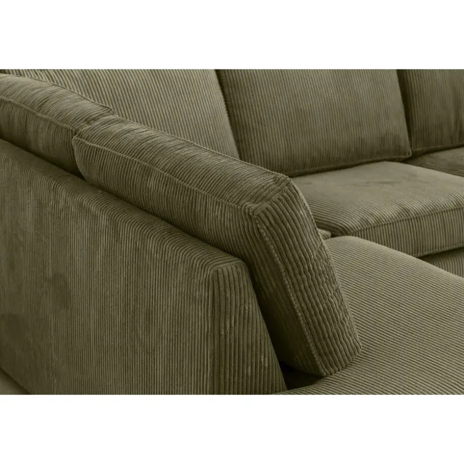 De bank Stuttgart is een tijdloze hoekbank uitgevoerd in een olijfgroene ribstof. De bank heeft een robuuste uitstraling waarop je heerlijk kunt ontspannen dankzij de hoek aan de linkerkant. De bank is lekker ruim zodat je er met het hele gezin gezellig op kunt kruipen. Door de olijfgroene kleur is deze bank makkelijk te combineren. De afmetingen van de hoekbank Stuttgart is 80x267x207 cm (hxbxd).