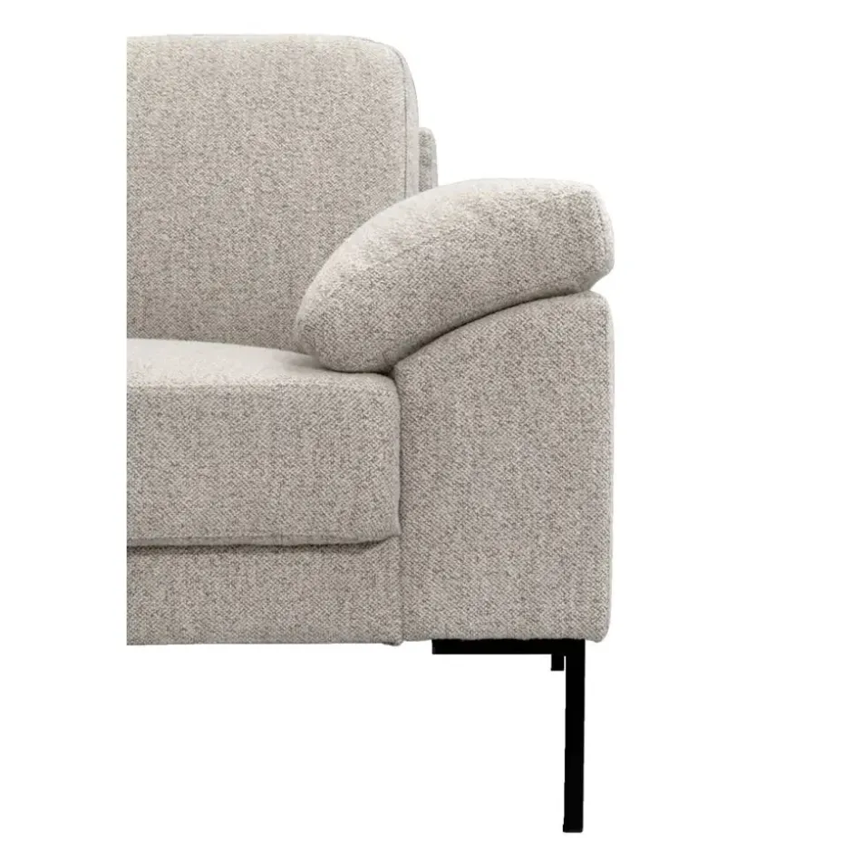 Hoekbank Tom heeft een sfeervolle Scandinavische uitstraling uitgevoerd in een beigekleurige stof genaamd Monza. De bank heeft slanke poten en is voorzien van een hoek aan de linkerkant. Hoekbank Tom biedt ruimte genoeg om met meerdere mensen op te zitten.