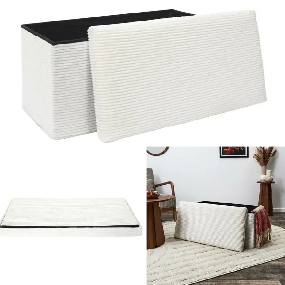Home Deco Factory poef Cocoonen met opbergruimte waar je ook op kunt zitten. Deze witte opvouwbare poef, ook wel een hocker genoemd is ideaal voor elk huishouden. De poef heeft een afneembare deksel, geeft je extra opbergruimte en is tevens te gebruiken als voetenbankje. Bespaar ruimte door bijvoorbeeld speelgoed of dekens erin op te bergen of de poef als zitplek te gebruiken. Een mooie aanvulling voor in huis. Kleur: wit. Materiaal: MDF/polyester. Afmeting: ca. 76 x 38 cm.
