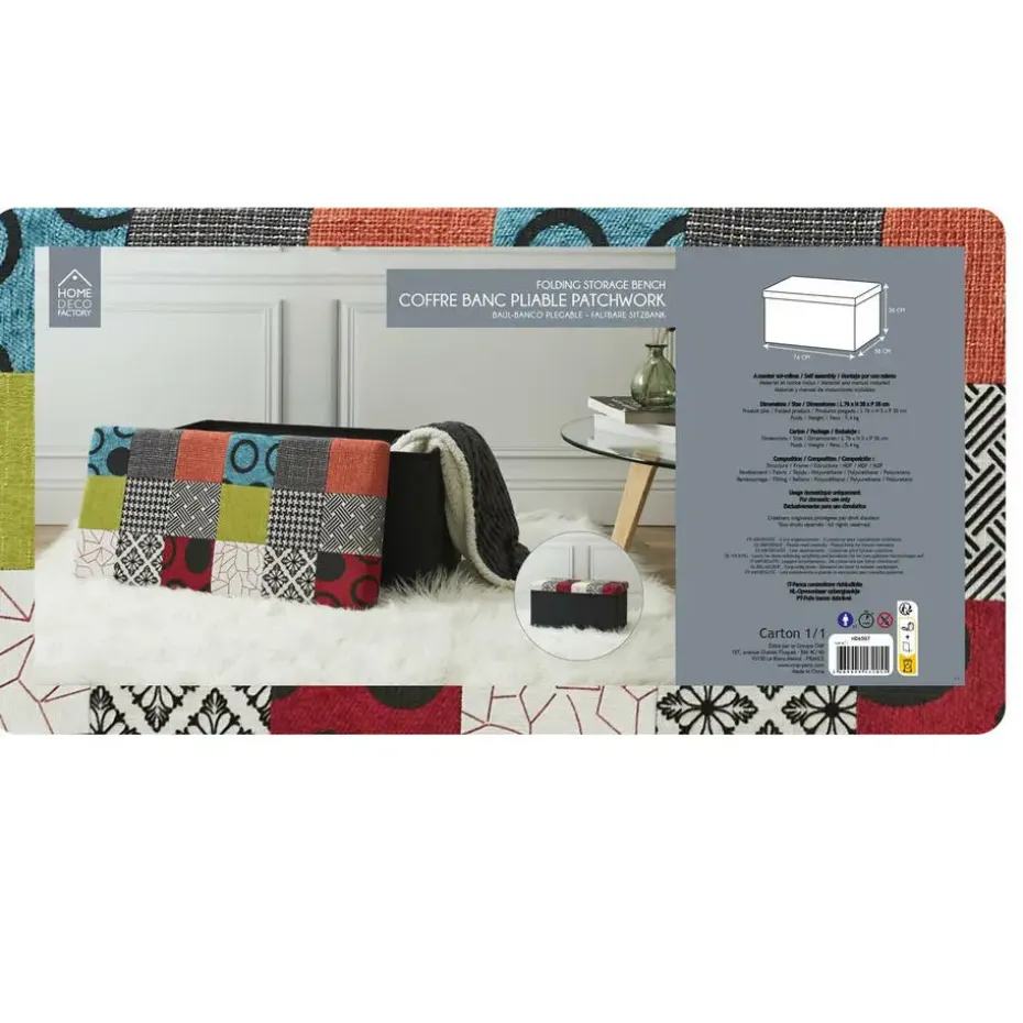 Home Deco poef Multi color Tile heeft een fijne opbergruimte waar je ook op kunt zitten. Deze kleurrijke opvouwbare poef, ook wel een hocker genoemd is ideaal voor elk huishouden. De poef heeft een afneembare deksel, geeft je extra opbergruimte en is tevens te gebruiken als voetenbankje. Bespaar ruimte door bijvoorbeeld speelgoed of dekens erin op te bergen of de poef als zitplek te gebruiken. Een mooie aanvulling voor in huis. Kleur: multi color. Materiaal: polyester en MDF. Afmeting: ca. 76 x 38 cm.