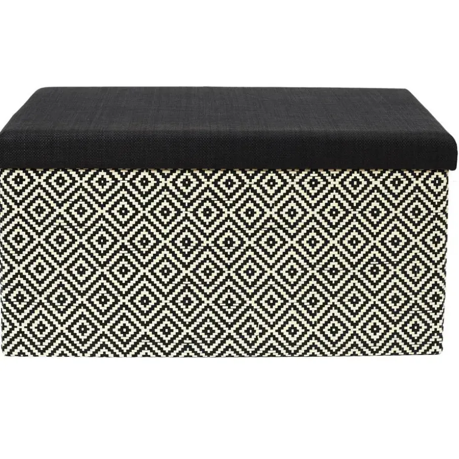 Home Deco Factory poefje Braided met opbergruimte waar je ook op kunt zitten. Deze opvouwbare poef, ook wel een hocker genoemd is ideaal voor elk huishouden. De poef heeft een afneembare deksel, geeft je extra opbergruimte en is tevens te gebruiken als voetenbankje. Bespaar ruimte door bijvoorbeeld speelgoed of dekens erin op te bergen of de poef als zitplek te gebruiken. Een mooie aanvulling voor in huis. Kleur: donkerbruin/zwart. Materiaal: polyester en mdf. Afmeting: ca. 76 x 38 cm.