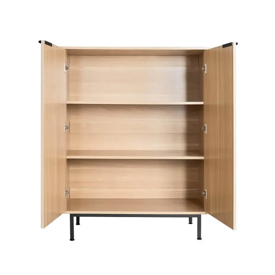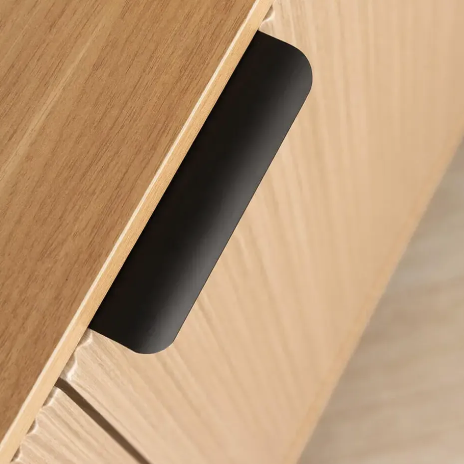 Het NYLA dressoir combineert modern design met functionele opbergruimte. De warme houtkleur creëert een gezellige sfeer, terwijl de zwarte metalen poten het meubel een stijlvolle, moderne touch geven. De geribbelde look van de fronten maakt het dressoir tot een echte blikvanger en geeft je woonkamer een bijzondere elegantie. De twee deuren verbergen veel opbergruimte voor serviesgoed, decoraties of persoonlijke spullen – perfect voor woon- en eetkamers. Dankzij de eenvoudige montage is ons dressoir snel op te zetten en met zijn strakke ontwerp is het ideaal voor verschillende interieurstijlen, van modern tot Scandinavisch. Plaats stijlvolle accenten en creëer orde met het NYLA dressoir.