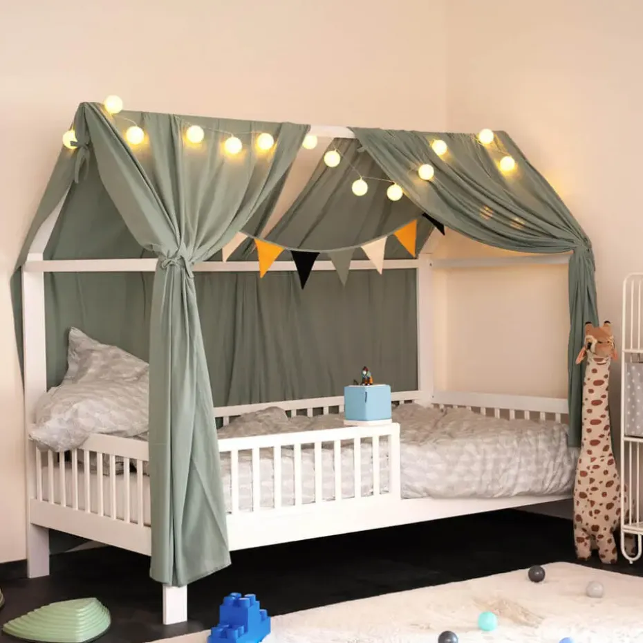 Zoete dromen in sterrenland: dit design kinderbed in de vorm van een huis stimuleert de fantasie en biedt tegelijkertijd een gezellig thuisgevoel. Het STERNENLAND kinderbed past in iedere jongens- en meisjeskamer.Het robuuste bedframe van grenenhout is duurzaam en beschikt over valbeveiliging. Een passende houder voor een Toniebox nodigt uit tot genieten van een gezellig hoorspelritueel.