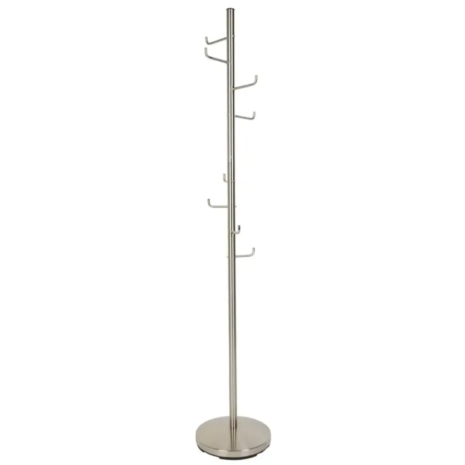 De staande Harry Hooked kapstok kan in het kleinste halletje of kantoor nog een plek vinden. Van onder tot boven is deze kapstok voorzien van een fijn formaat haken om jassen, sjaals en klerenhangers aan te hangen. Deze staande kapstok is uitgevoerd in nikkel en doet het ook goed als kledingstandaard in de slaapkamer.