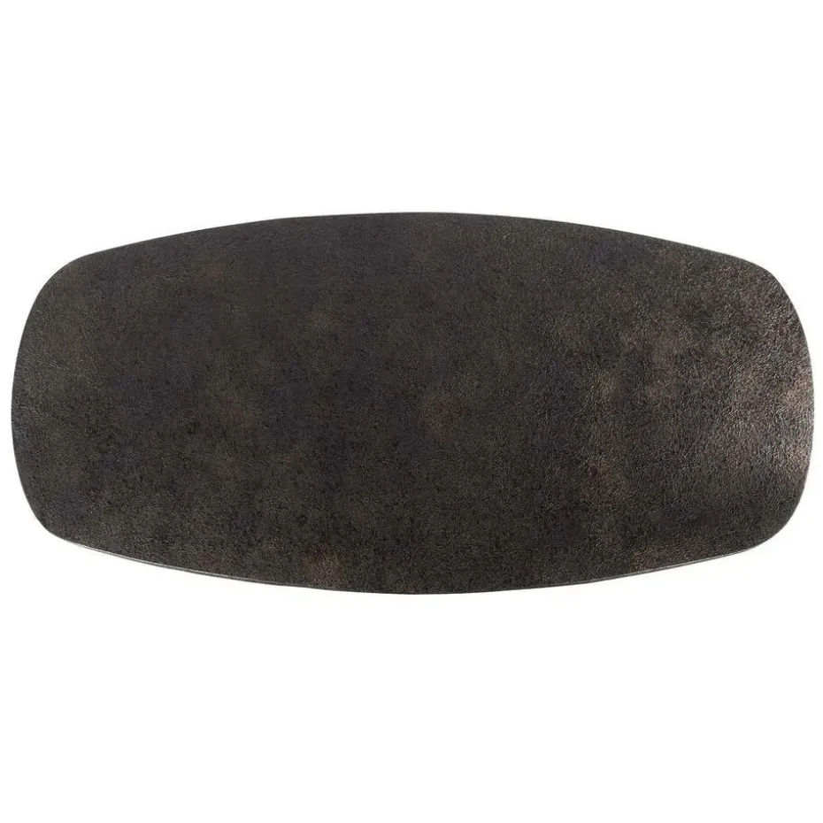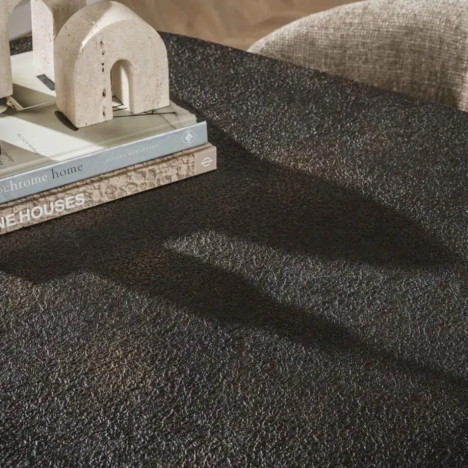 De eettafel Metallic heeft een Deens ovaal blad van 180 cm, uitgevoerd in een metallic finish. Het blad rust op een spider frame van gepoedercoat staal, dat zorgt voor een stabiele constructie en een herkenbare vormgeving. Deze tafel is ook verkrijgbaar in een lengte van 215 cm.