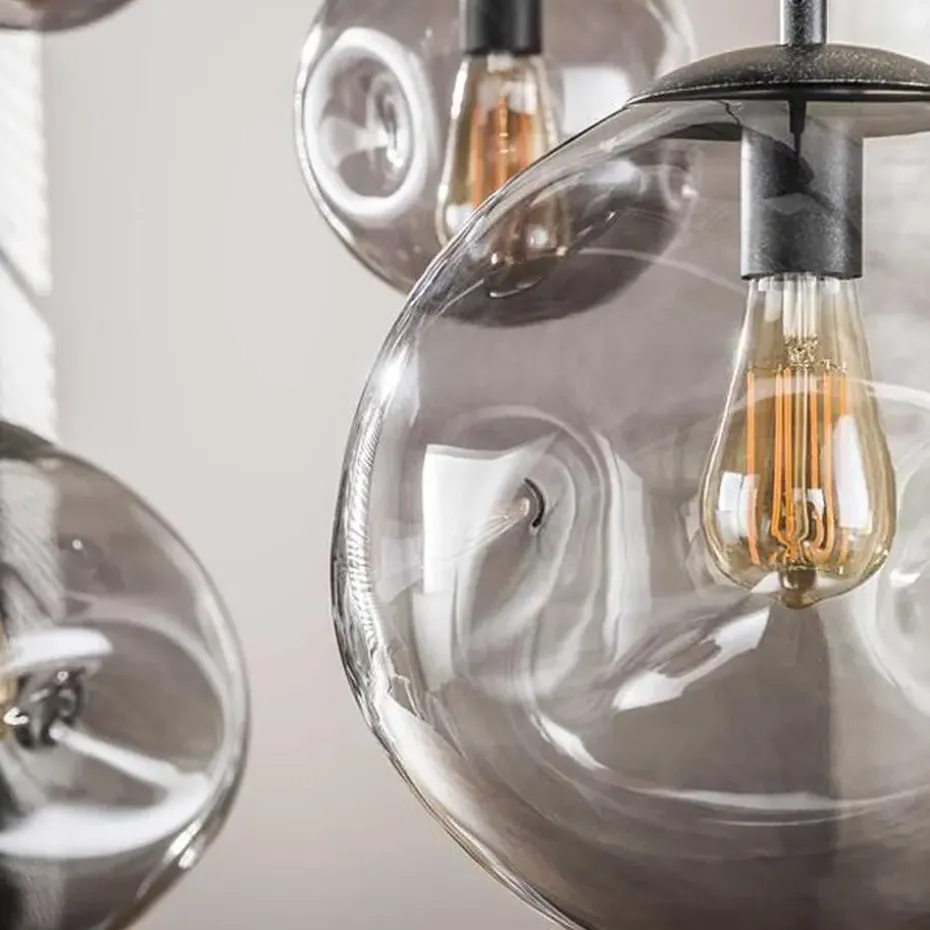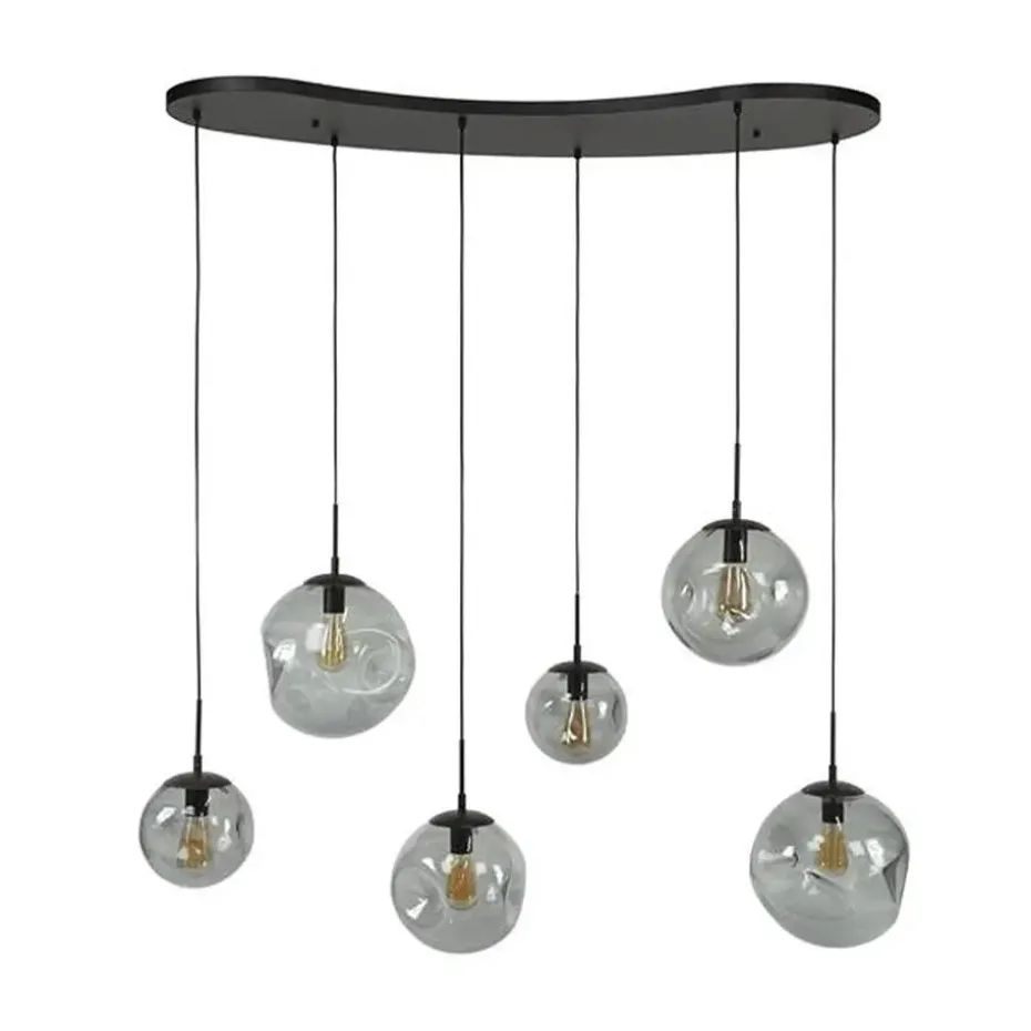 Hanglamp Stellar Black Series is een stijlvolle verlichtingsoptie voor boven iedere eettafel. De zes glazen kappen zitten met een verstelbaar snoer vast aan een organisch gevormde plafond base.Ze zijn dus ieder afzonderlijk verstelbaar tot een maximale lengte van 150 cm.De kappen kunnen los gehaald worden, waardoor de lichtbron gemakkelijk geplaatst kan worden.