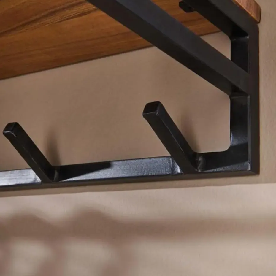 Deze kapstok ‘custom’ is voorzien van een hoedenplank gemaakt van massief acacia hout. Zorgvuldig geselecteerd hout, voorzien van een fijne nerf en diverse noesten, die op ambachtelijke wijze wordt verwerkt. Dit zorgt voor een natuurlijke én unieke look aan de wand. Aan de hoedenplank is een zwart geschuurd metalen roede bevestigd en zijn er 6 haakjes aanwezig. Er kunnen dus zowel jassen aan een haakje als aan een hanger worden opgehangen. De kapstok is voorzien van twee bevestigingsogen aan de achterzijde, zodat de kapstok eenvoudig aan de wand kan worden gemonteerd.