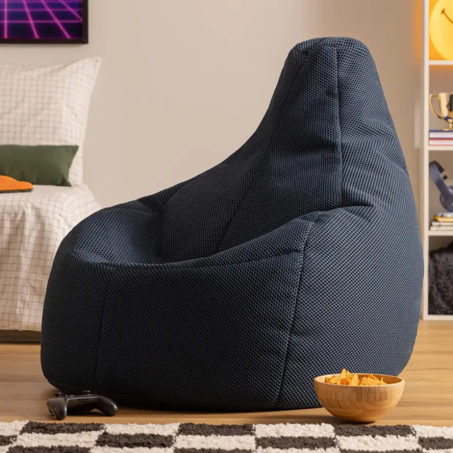 ONDERSTEUNEND XL RECLINER-ONTWERP: Deze zitzak voor gaming is vakkundig ontworpen in een ergonomische recliner-vorm, met een ondersteunende rugleuning en een slimme interne stofstructuur voor ultiem comfort tijdens lange gamingmarathons. Vanwege de aard van met bonen gevulde producten kunnen de afmetingen enigszins variëren.