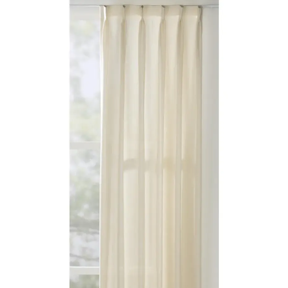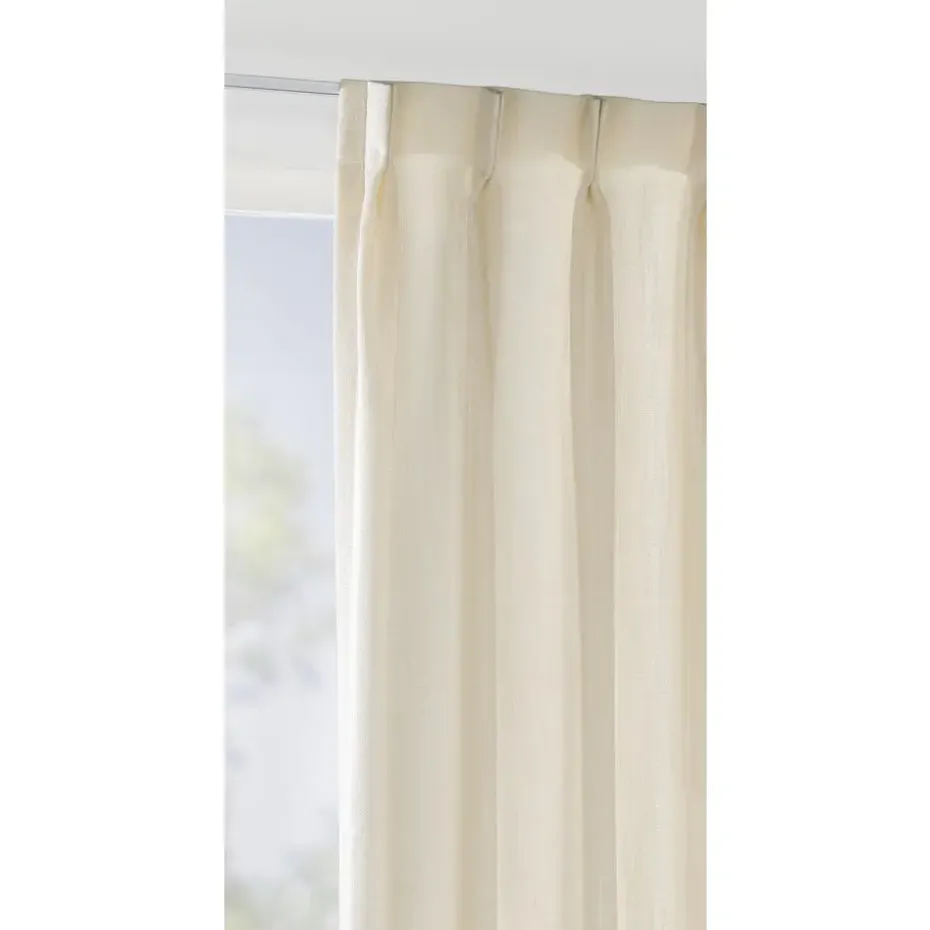 Inbetween Crudo in de kleur beige is een grof geweven inbetween met een transparant karakter dat zorgt voor een natuurlijke lichtinval en een rustige sfeer in huis. De structuur van de stof geeft het gordijn een stoere uitstraling, terwijl het licht op een zachte manier door de ruimte wordt verspreid. Dankzij de loodveter valt de stof strak en recht naar beneden, wat zorgt voor een verzorgde en evenwichtige afwerking. Deze gordijnstof is wasbaar op 30 graden, waardoor onderhoud eenvoudig blijft en de stof langdurig mooi blijft. Strijken kan op de lichtste stand om de textuur te behouden, terwijl drogen in de droger wordt afgeraden om de kwaliteit van het weefsel te beschermen. Als je op zoek bent naar raamdecoratie die licht doorlaat, karakter toevoegt aan je interieur en makkelijk te onderhouden is, dan is inbetween Crudo een goede keuze.