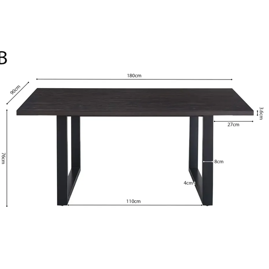 Interiax Eettafel ‘Oliver’ 180 cm Decor Donkerbruin