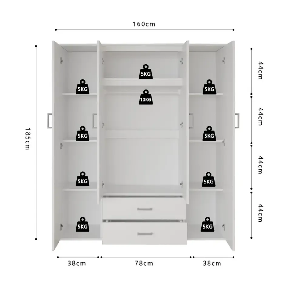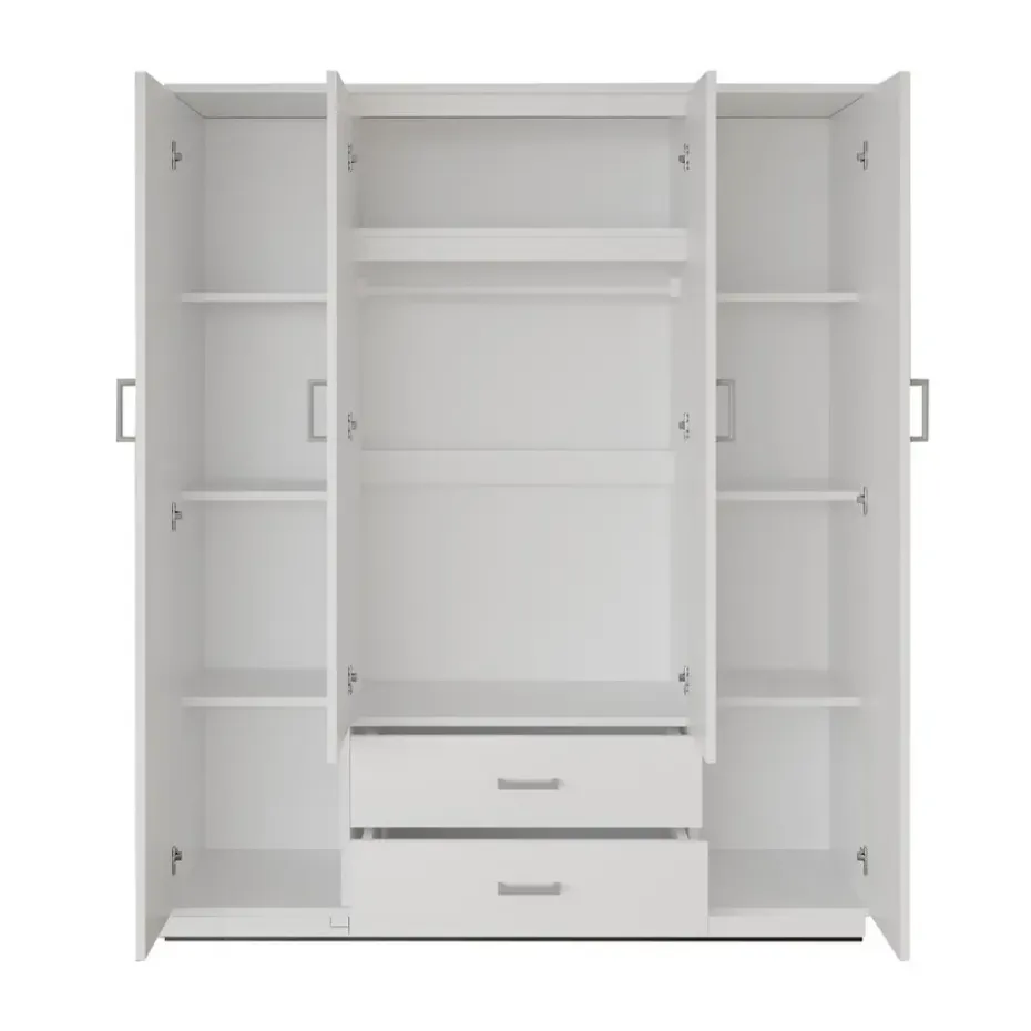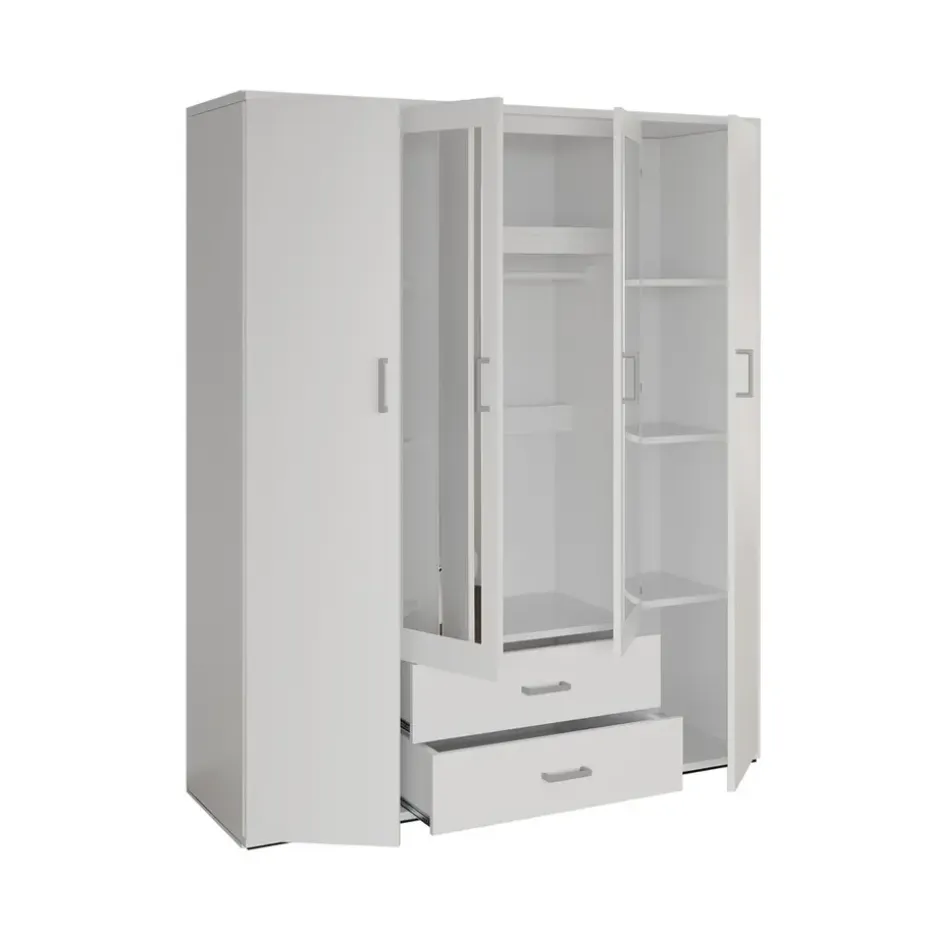 - Ruime opbergruimte: Uitgerust met 4 deuren, 2 lades, 1 hanger en 7 legplanken voor maximale opslag.