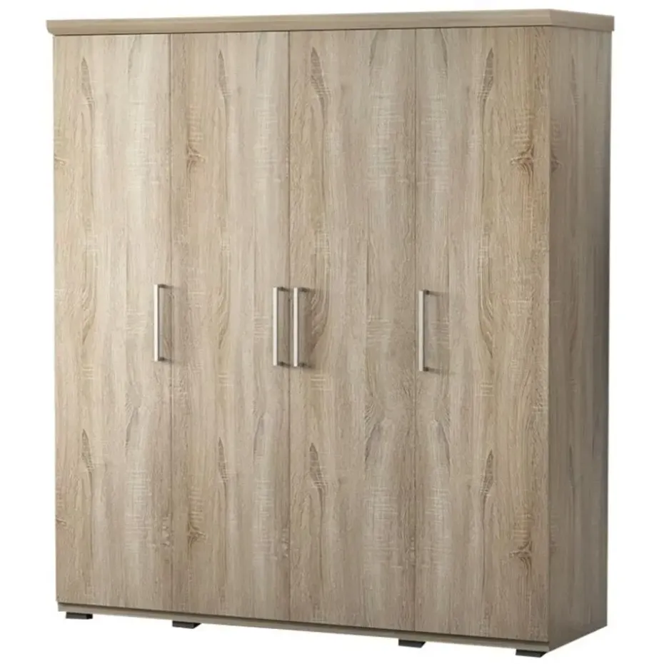 De Interiax Kledingkast ‘Mila’ in Sonoma Eik biedt een ruime en stijlvolle oplossing voor al je opbergbehoeften. Met afmetingen van 183x160x52 cm is deze kast ideaal voor het opbergen van kleding, beddengoed en accessoires, zonder aan stijl in te boeten. De kast beschikt over 4 deuren, een ruime hanger voor het ophangen van kleding, en 6 legplanken die voldoende ruimte bieden voor gevouwen kleding en andere items. Het warme Sonoma Eik design zorgt voor een natuurlijke uitstraling die naadloos in verschillende interieurstijlen past.