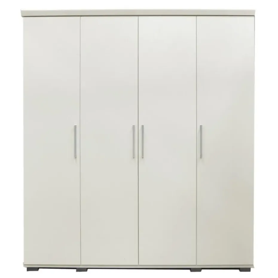 De Interiax Kledingkast ‘Mila’ in wit biedt een ruime, stijlvolle opbergoplossing die perfect past in elke slaapkamer. Met afmetingen van 183x160x52 cm is deze kast ideaal voor het netjes opbergen van kleding, beddengoed en accessoires. De kast heeft 4 deuren die toegang geven tot een goed georganiseerde indeling met 1 hanger voor het ophangen van kleding en 6 legplanken voor gevouwen kleding en andere items. Het strakke, witte design voegt een frisse, moderne uitstraling toe die moeiteloos aansluit bij verschillende interieurstijlen.