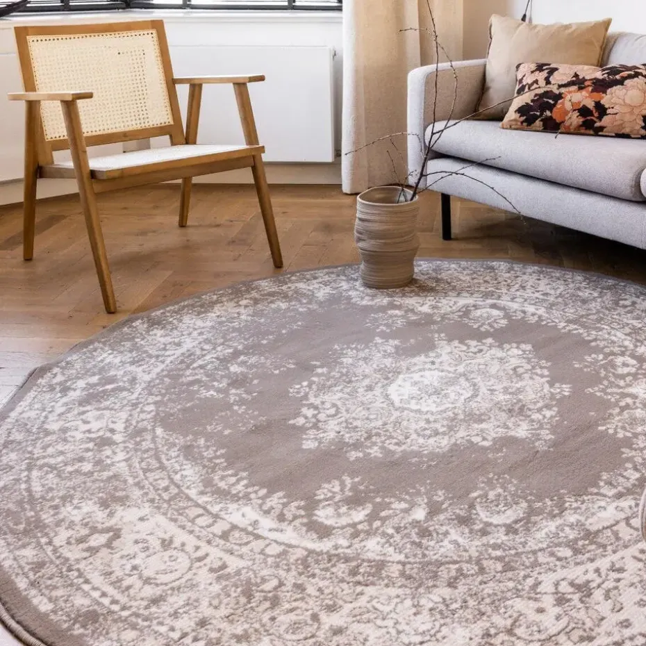 Het vintage vloerkleed Keshan in de ronde vorm is leverbaar in 6 verschillende kleuren. Dit vloerkleed is gemaakt van 100% polypropleen en wordt gemaakt in Europa. Het vloerkleed is leverbaar in de maat 160cm rond en de 190cm rond. Door de diverse kleuren die in dit kleed zijn verwerkt is het prefect te combineren voor in de woonkamer, slaapkamer of kantoor. Opzoek naar een rechthoek variant? Deze is ook beschikbaar in diverse kleuren en de afmetingen 190×280 en 160x230cm