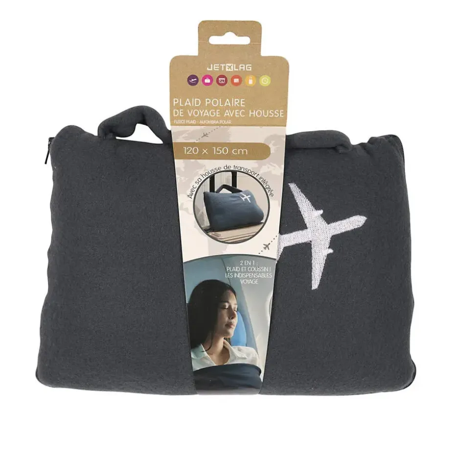 Fleecedeken/reisdeken in het zwart met een hoes. Op zoek naar een warme en zachte deken voor in het vliegtuig? Dan is dit rechthoekige zachte en warme deken voor op reis handig voor onderweg. Kruip lekker onder deze zwarte Jetlag deken. Met deze deken kom je zeker warm op je bestemming aan. En ook makkelijk weer op te bergen met een bijbehorende hoes.