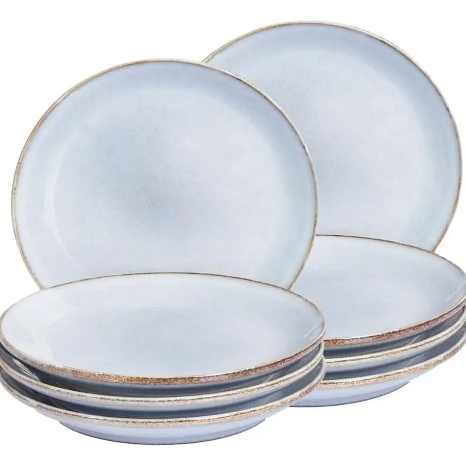 Handgemaakte dessertborden set voor 8 personen. Verwelkom je gasten en geniet van elegante momenten met deze set van 8 bijzetborden. De neutrale lichte tint, geaccentueerd met subtiele bruine details, past prachtig bij donkerhouten tafels of elk interieur. Deze set is gemaakt van duurzaam en gemakkelijk te onderhouden steengoed en is zowel magnetron- als vaatwasmachinebestendig voor ultiem gemak. Elk stuk heeft een unieke afwerking, waardoor het echt uniek is. Deze set combineert stijl met functionaliteit en voegt een vleugje charme toe aan elk koffie- of theemoment.