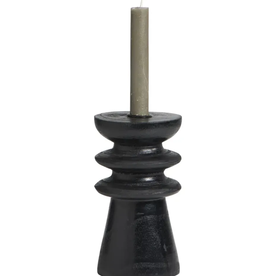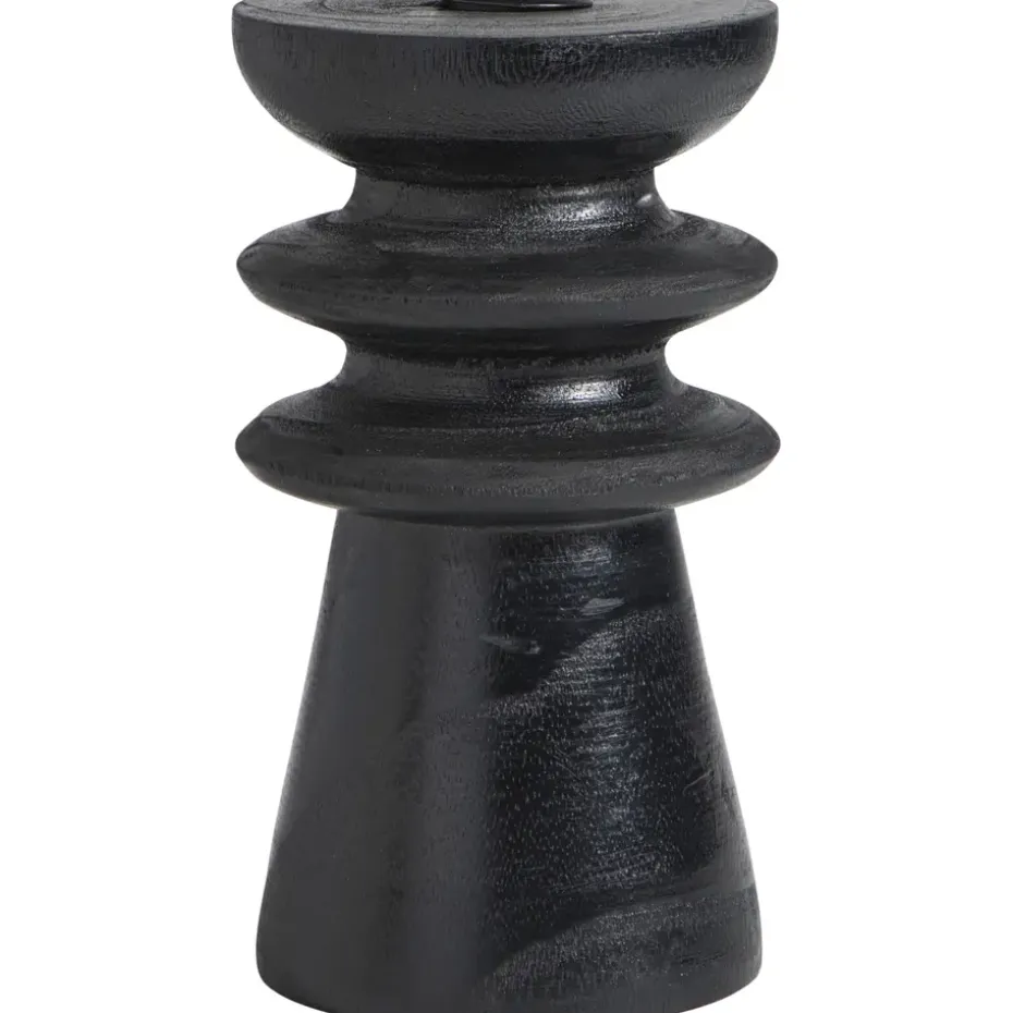 Kandelaar Paula is gemaakt van zwart hout en valt op door haar organische vormen die zorgen voor een natuurlijke en elegante uitstraling. Met een hoogte van 18 cm en een diameter van 10 cm is deze kandelaar compact maar stijlvol, perfect voor het creëren van een warme sfeer in huis. De vloeiende lijnen en het matte zwarte hout maken dit een tijdloos decoratiestuk dat moeiteloos past bij zowel moderne als landelijke interieurs. Ideaal op een eettafel, dressoir of als onderdeel van een sfeervolle opstelling. Kandelaar Paula brengt warmte, stijl en een natuurlijk accent in elke ruimte.