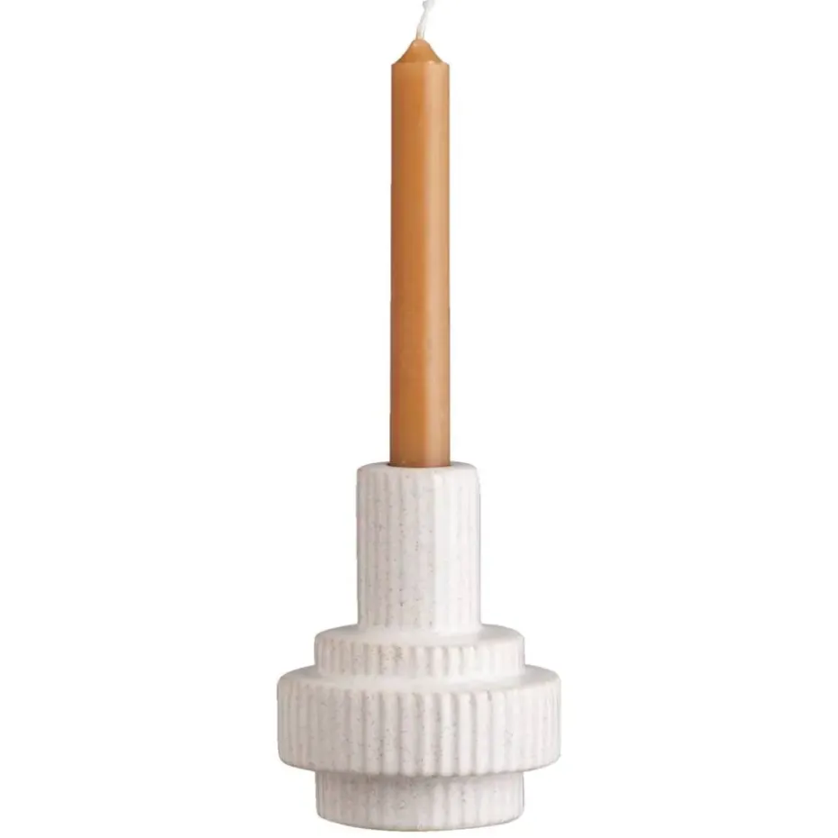 Breng landelijke charme in huis met de zandkleurige Ribe kandelaar. Deze keramieken kandelaar, met een afmeting van 12,5xØ9,5 cm, is perfect geschikt voor één dinerkaars. De Ribe kandelaar voegt een warme en gezellige sfeer toe aan elke ruimte, ideaal voor je woonkamer, eetkamer of slaapkamer. Geniet van de rustieke uitstraling die deze kandelaar biedt!