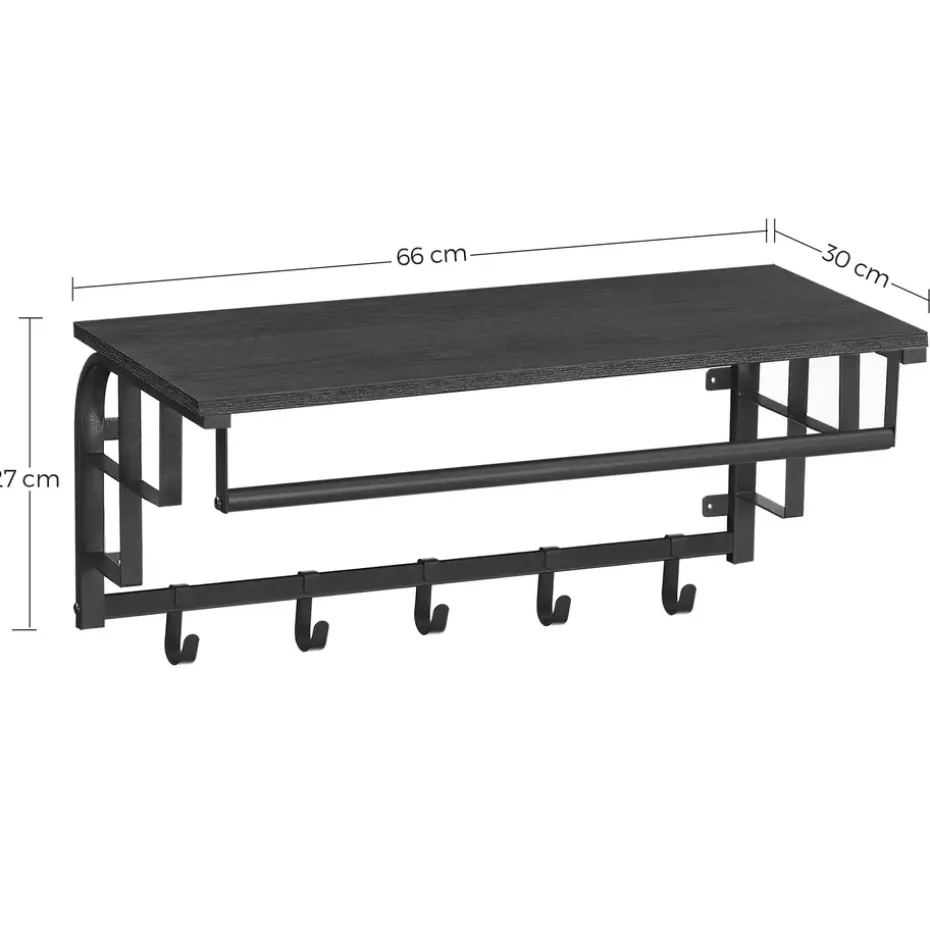 Een groot deel van de charme schuilt echter in haar multifunctionaliteit. Het product is immers een kapstok en wandplank ineen, met 5 haken kan je al heel wat jassen, tassen, sjaals of hoeden weghangen, niet?