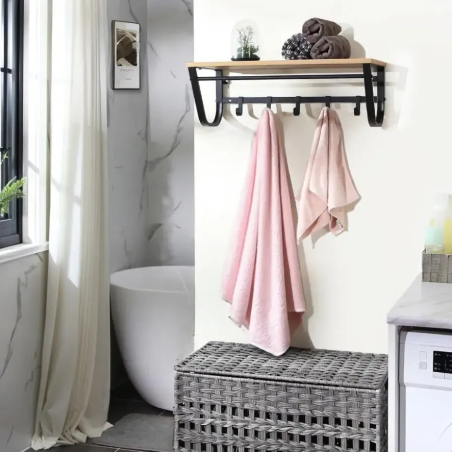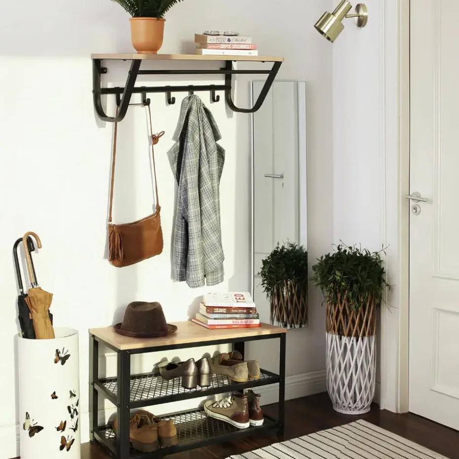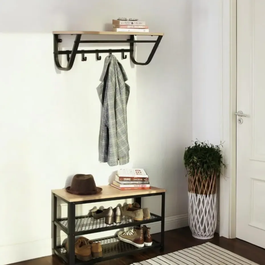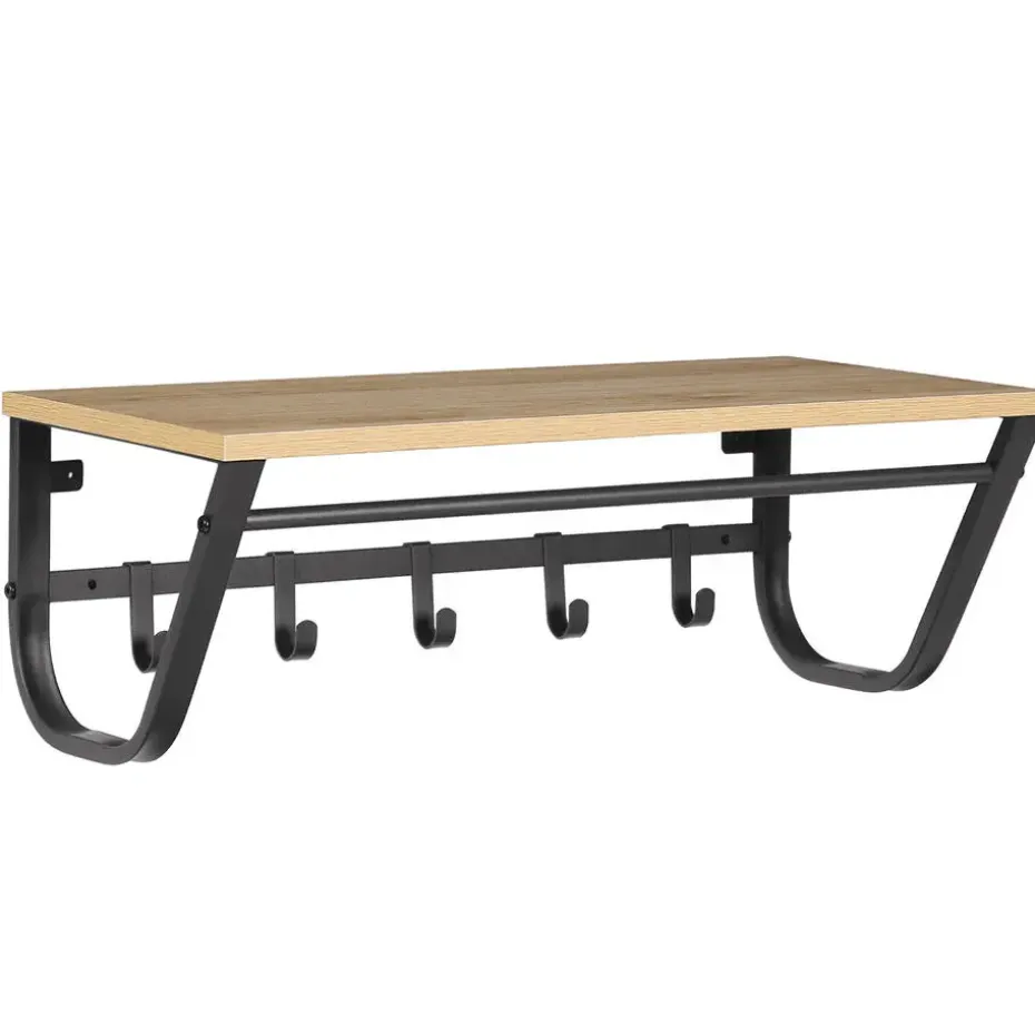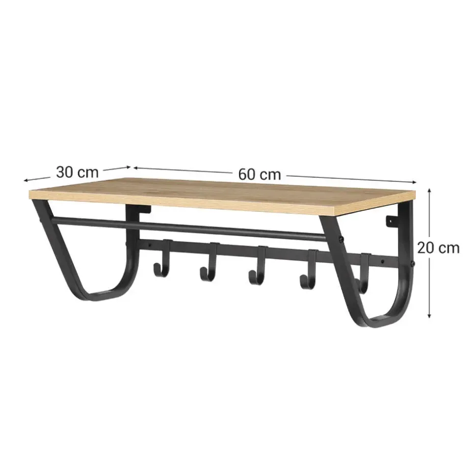 Deze kapstok combineert verschillende ophang- en opbergmogelijkheden met een plank, een rail en meerdere haken. De kapstok neemt weinig ruimte in beslag, maar is toch zeer praktisch. De kapstok heeft een leuke vintage toets waardoor ze een echte eyecatcher zal zijn in uw hal, badkamer of woonkamer.