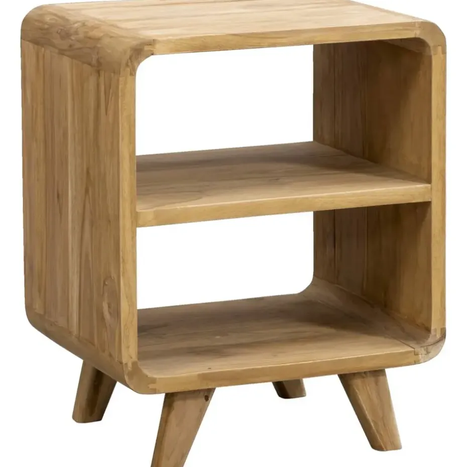 Kastje Bulan is een naturelkleurig kastje, gemaakt van teakhout. Het kastje heeft een ronde vorm, met open vakken waarin en waarop je allerlei spulletjes kwijt kunt. Het kastje heeft een afmeting van 40x33x50 cm en staat leuk in ieder interieur!