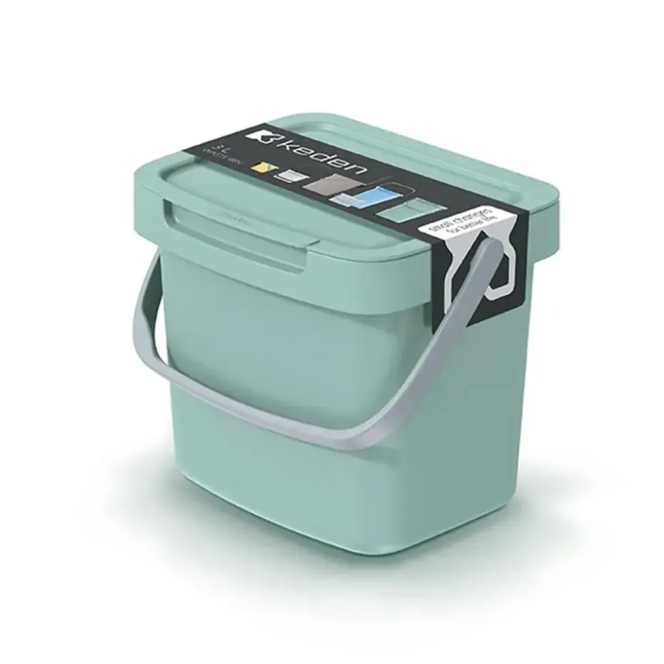 Sorteer of GFT afval scheiden prullenbak of afval emmer voor in de keuken of op het aanrecht. Voorzien van afsluitbare deksel en hengsel. Klein compartiment van 3 Liter. Kleur: mintgroen. Afmetingen: 19 x 17 x 15 cm.