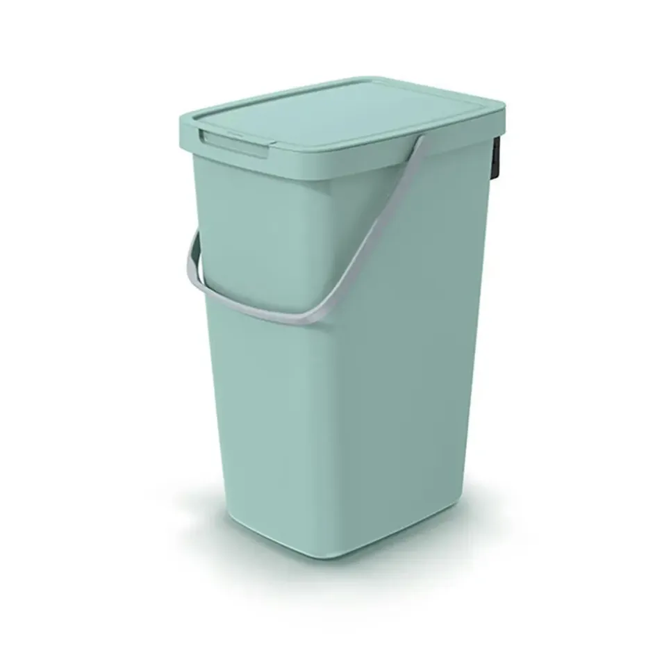 Sorteer of GFT afval scheiden prullenbak of afval emmer voor in de keuken of op/naast het aanrecht. Voorzien van afsluitbare deksel en hengsel. Ruim compartiment van 20 Liter. Kleur: mintgroen. Afmetingen: 23 x 29 x 45 cm. Op te hangen met bijleverde beugel.