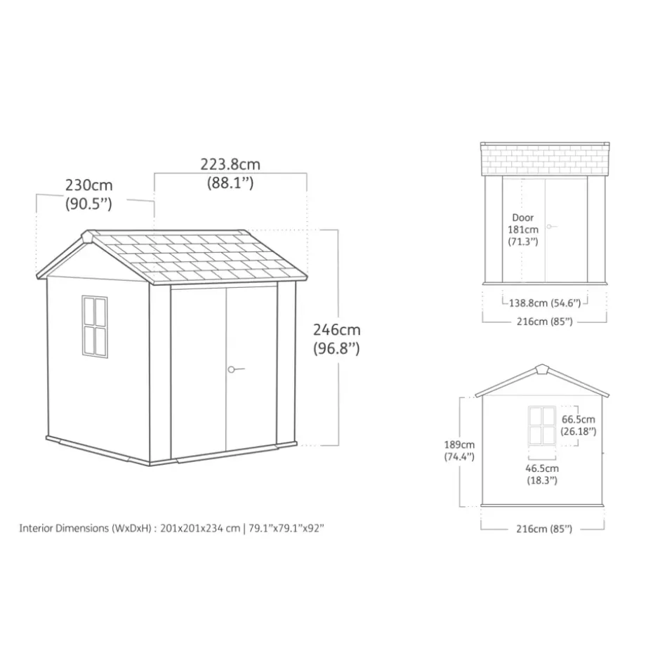 -Bouwpakket voor Keter Newton 775 Tuinhuis – 230×223,8x246cm – Grijs