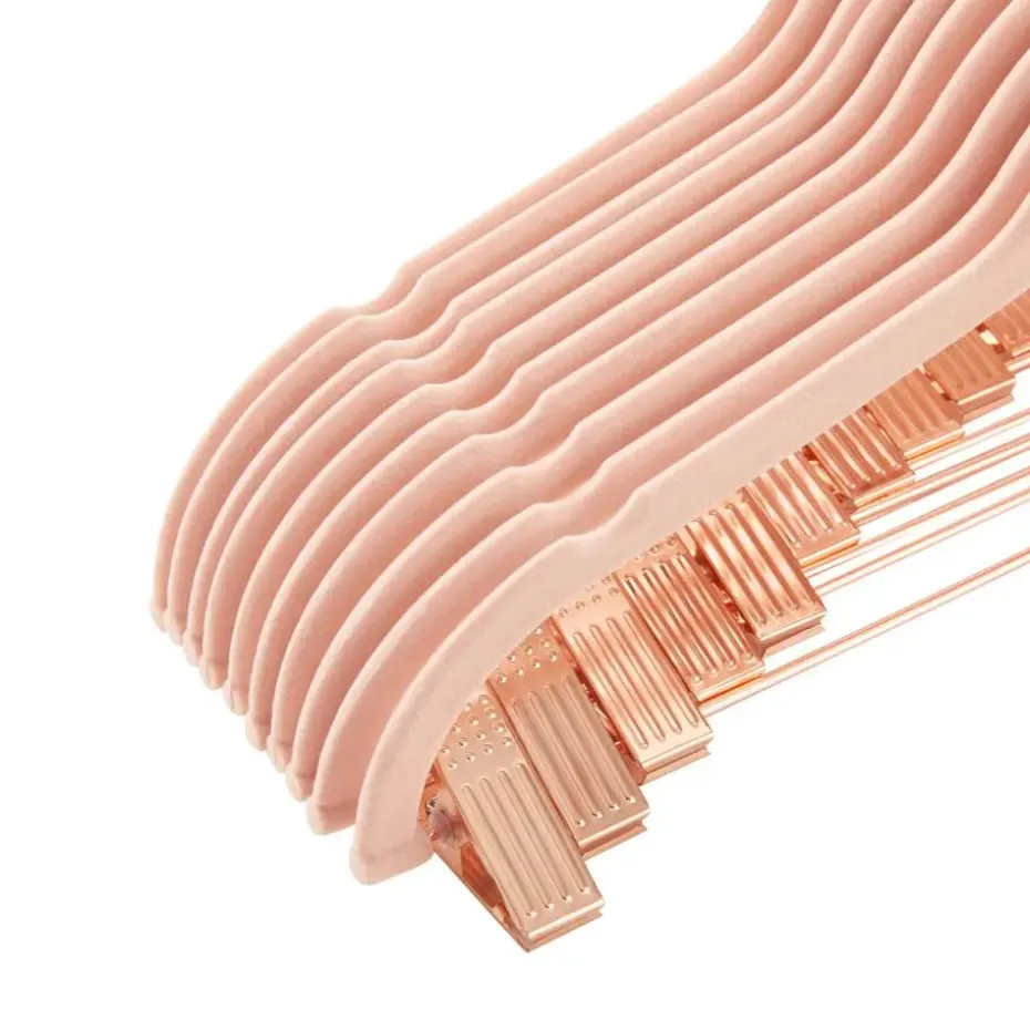 Met deze elegante set van 20 kledinghangers hang je gemakkelijk al je kleding op. Fluwelen hangers hebben een antislipoppervlak, inkepingen en schoudercontouren om de vorm van je kleding te behouden. Ze zijn ook voorzien van 2 verstelbare clips voor broeken en rokken. Door hun roze kleur zijn ze een mooie toevoeging aan iedere kast.